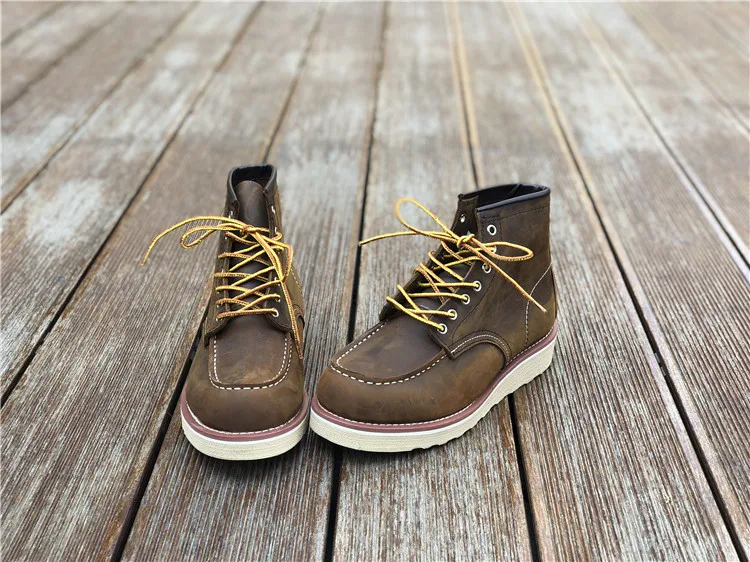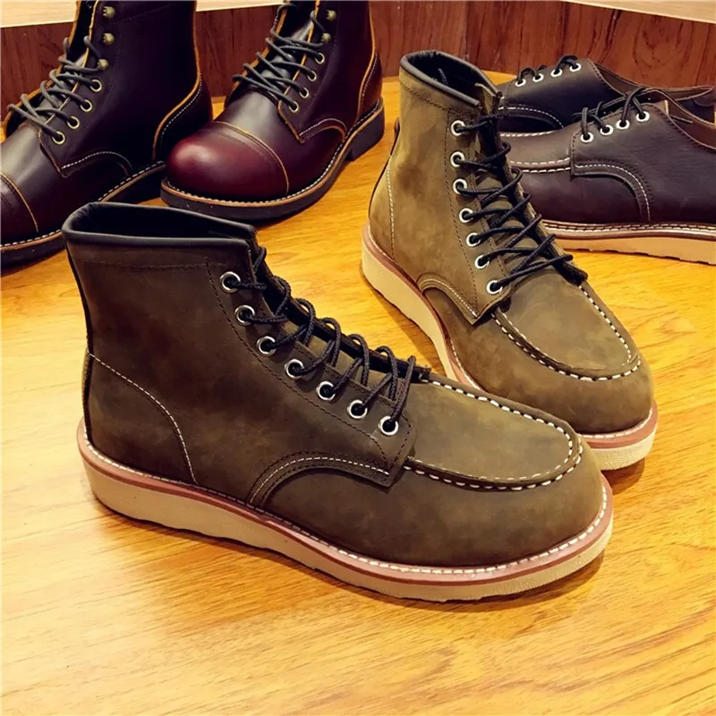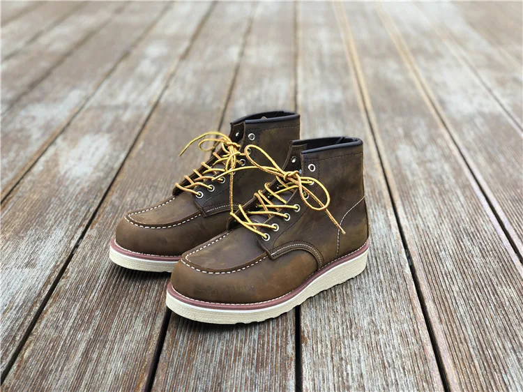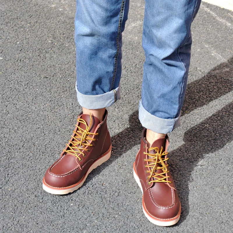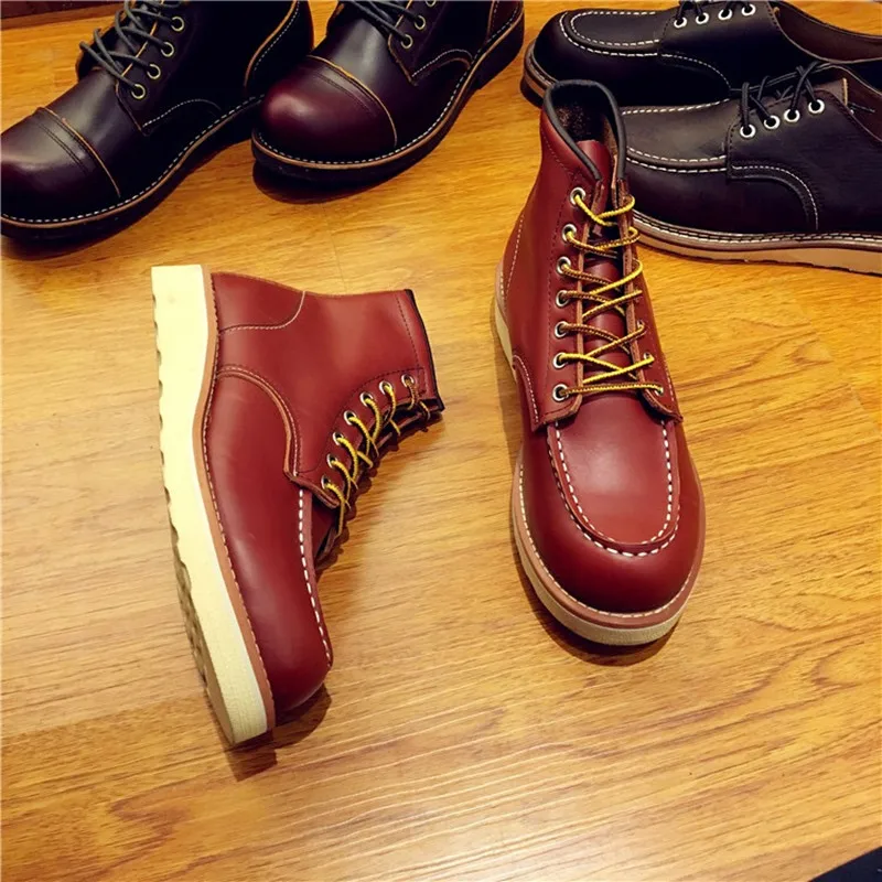 Мужские мотоциклетные ботильоны ручной работы, красные дышащие ботинки из натуральной кожи, на шнуровке, с крыльями, для работы