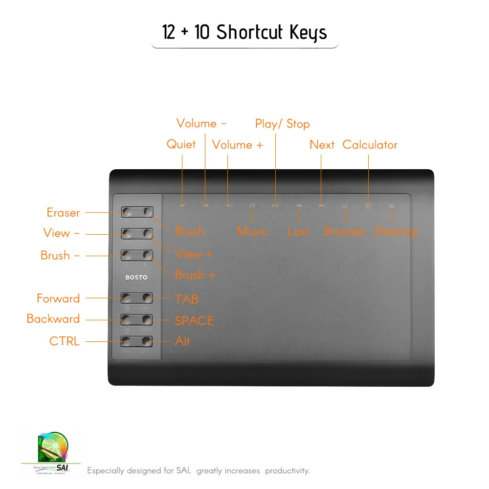 Планшет Графический Bosto 1060 Plus, 10 х6 дюймов, со стилусом