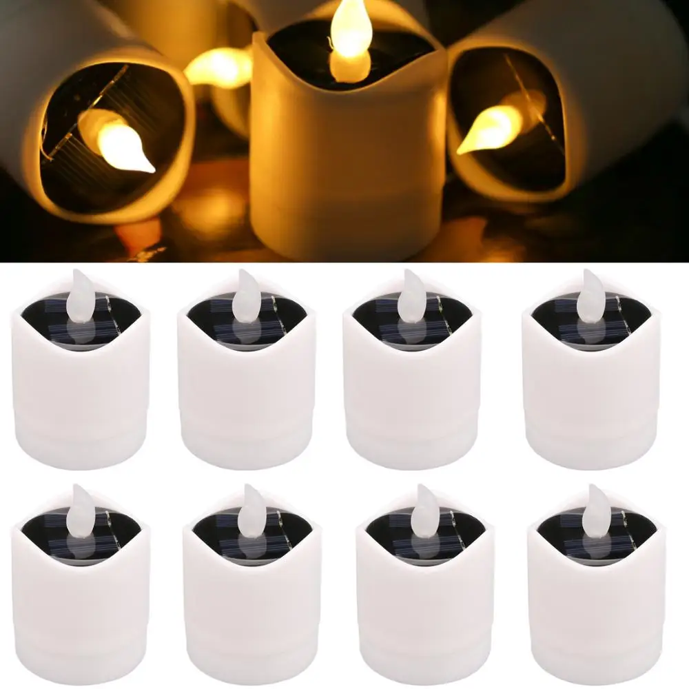 Автоматическое включение и выключение, 2 свечи с солнечными датчиками, электронный Мерцающий СВЕТОДИОДНЫЙ светильник для чая, беспламенный Ночной светильник, декор для вечеринок, свадеб, кемпинга