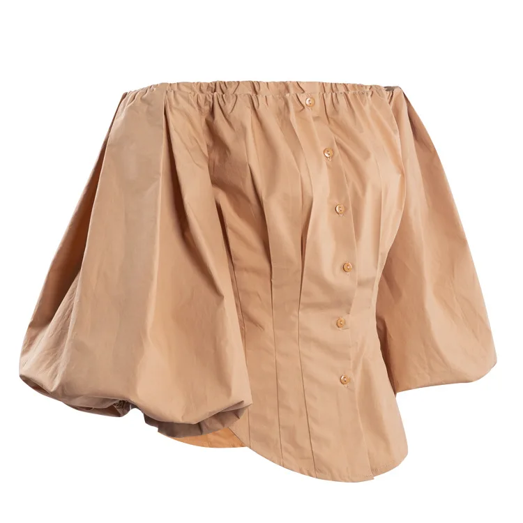 Женский топ с открытыми плечами Cryptographic, Сексуальная Блузка с рукавами-фонариками, на пуговицах, с открытой спиной, Стильные топы, блузы