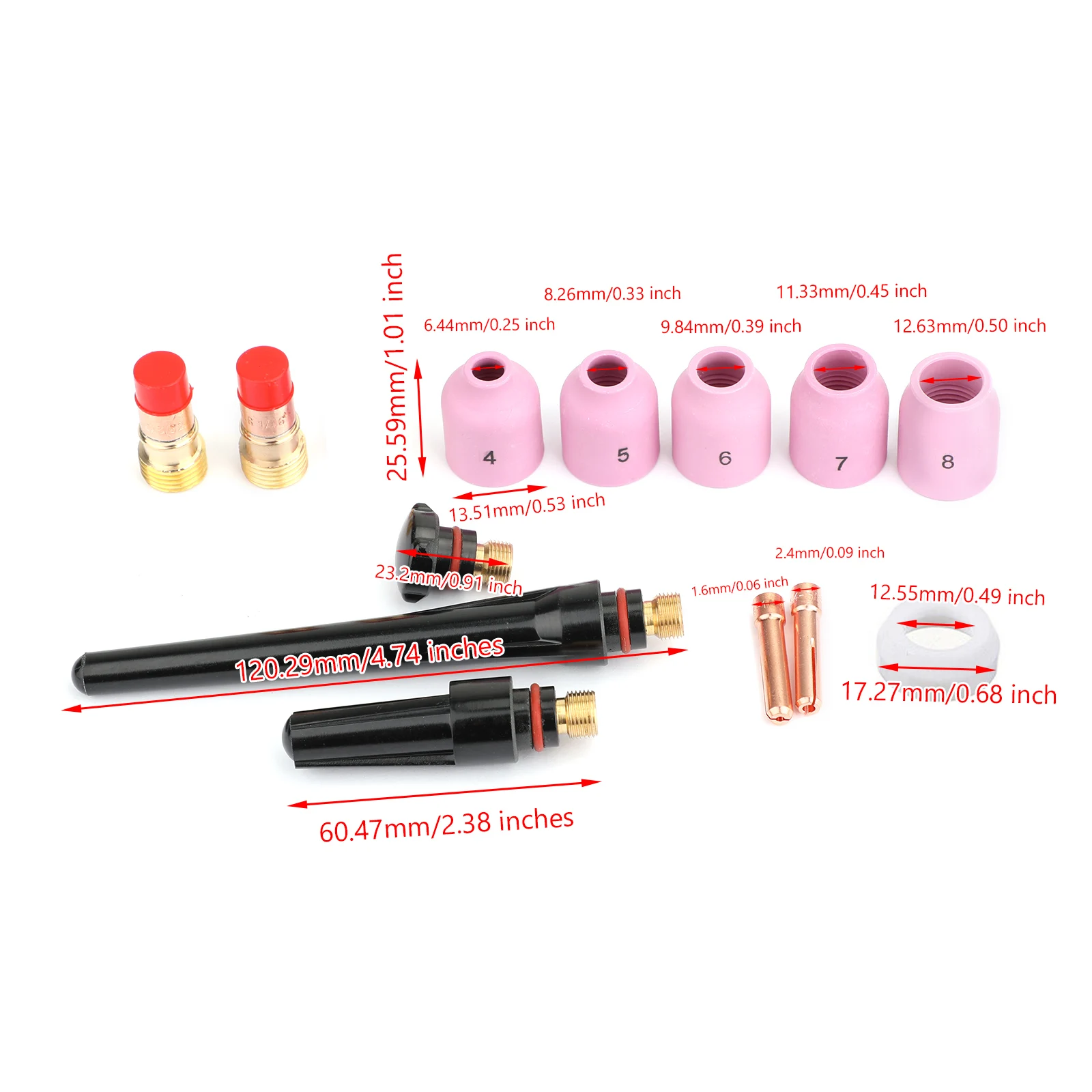 13 шт. TIG сварочный фонарь 17/18/26 Stubby Набор газовых линз 1/16 "-3/32"