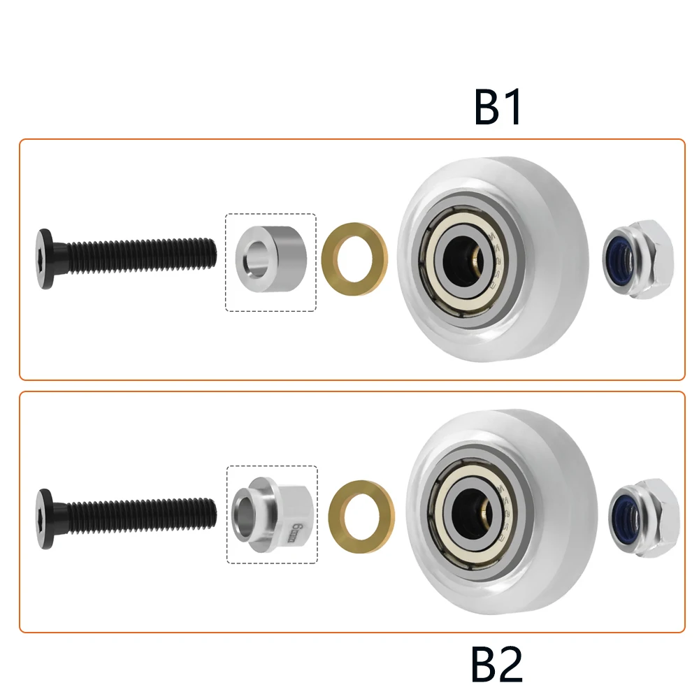 1 x Delrin колесо холостого шкива2 x подшипник1 x прецизионные прокладки1x4 "алюминиевая прокладка1 x винт (M5 * 25 мм)1 х нейлоновая запорная гайка (M5)