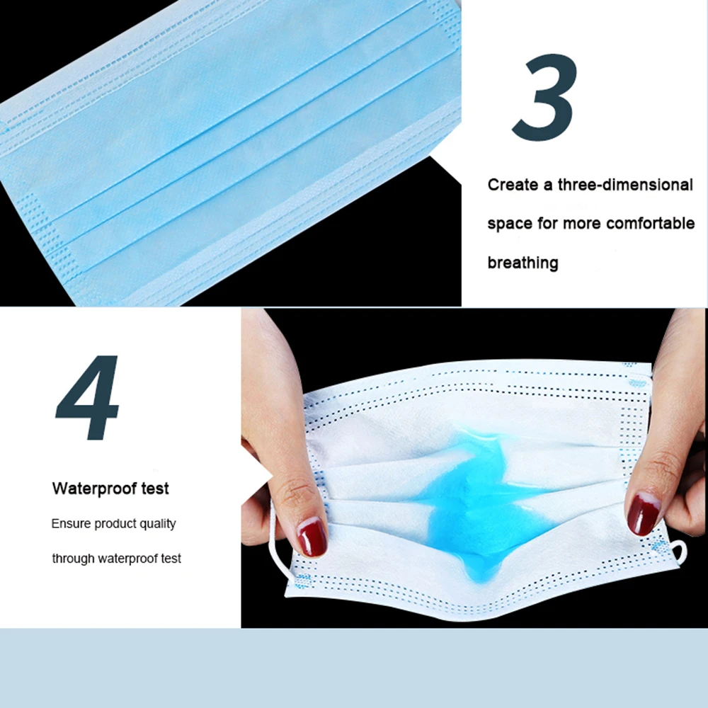Маски одноразовые со ртом для лица, медицинская маска Нетканая 3-сл...