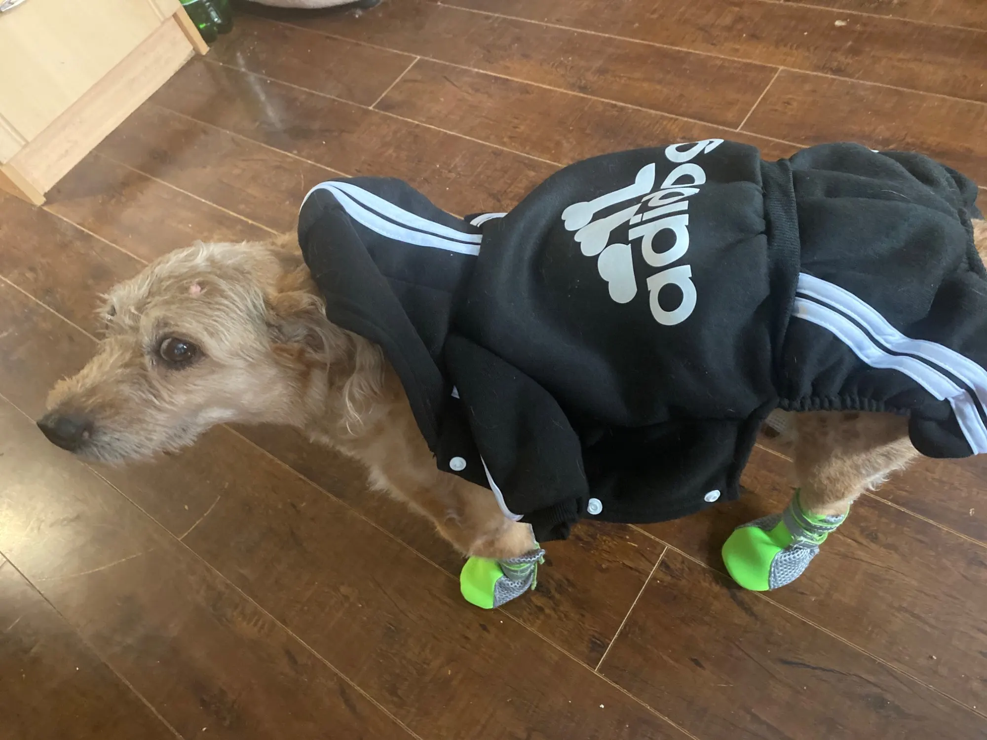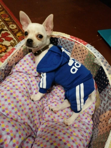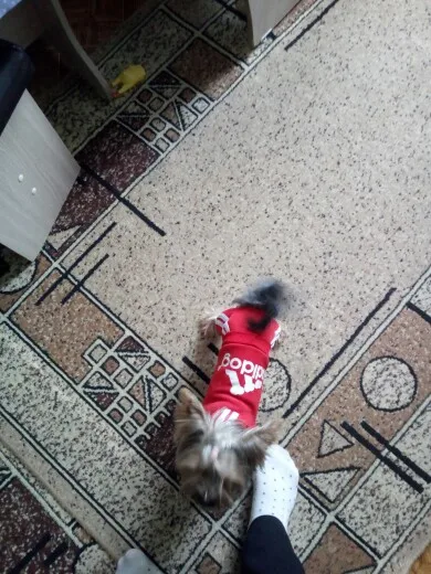 Комбинезон очень крутой , но нам оказался маленький и я очень растопилась. Белла , так зовут нашу чихуахуа идти даже не смогла.