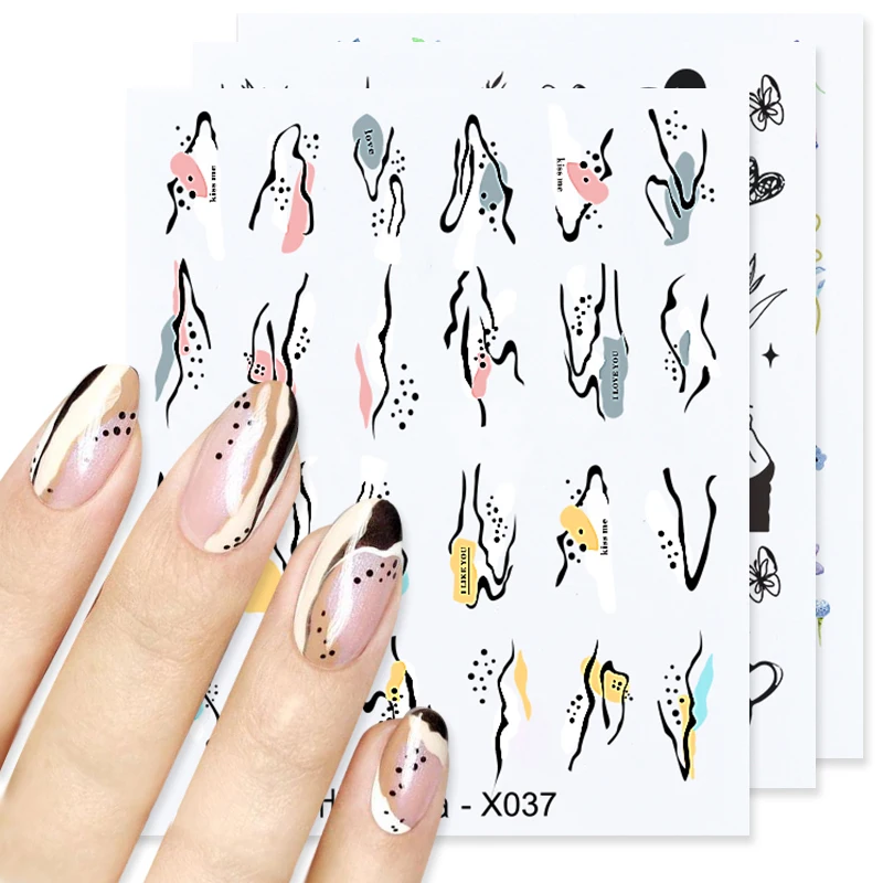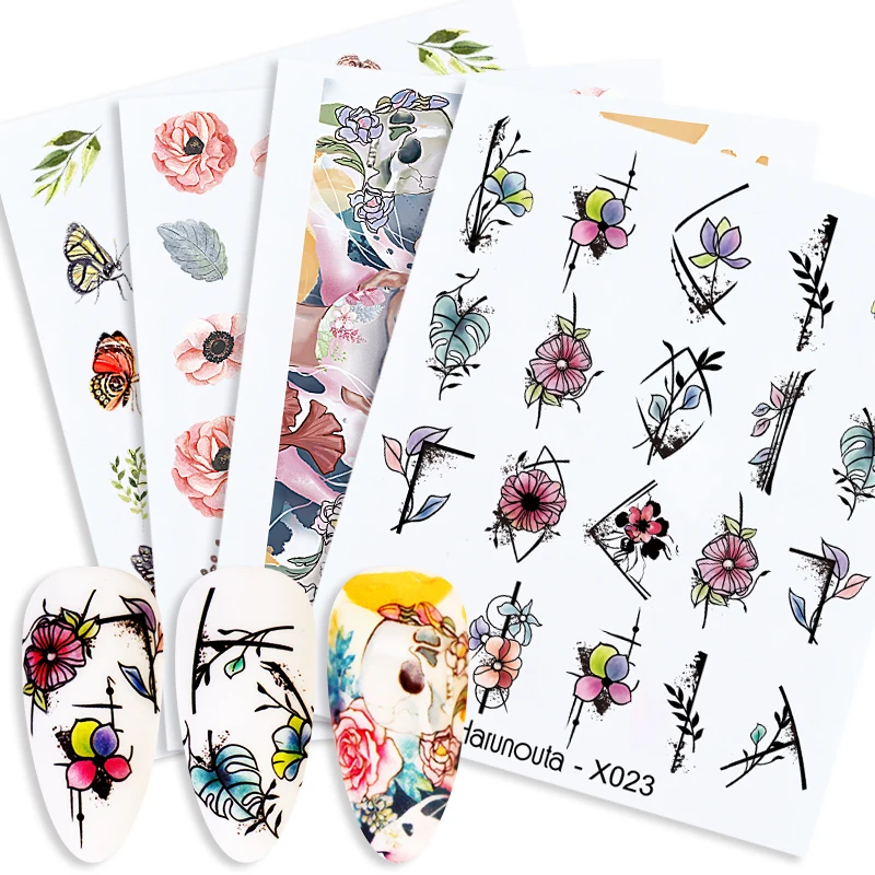 Наклейки для ногтей, с геометрическими линиями, цветами и листьями,...