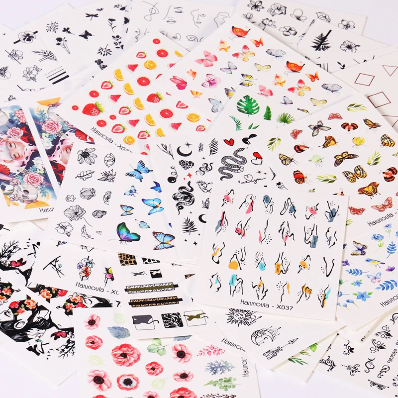 Декоративные наклейки в виде бабочки, летняя наклейка-слайдер в виде наклейки на ногти цветок, змеи