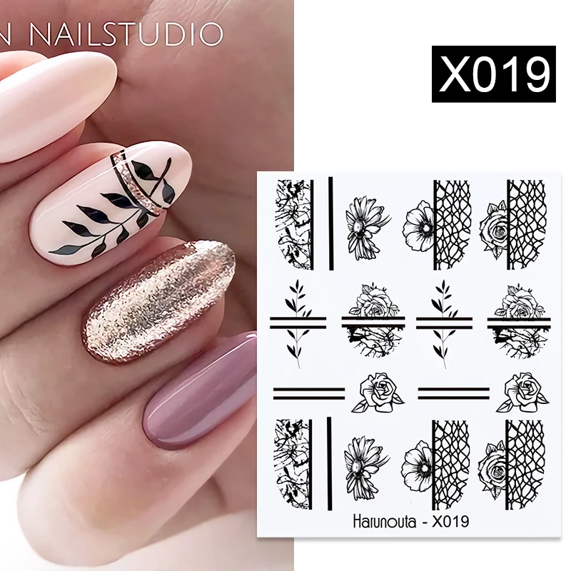 Наклейки для ногтей, 36 стилей, черный цветок, кружево, буквы, слай...