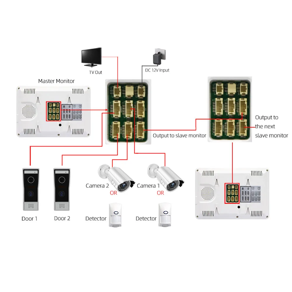 Обладая большим 10-ти "видео-телефон двери комплект поддерживает подключение с извещателем, аналоговый Камера и электронным замком. Он может защитить ваш дом и собственность во всех аспектах. Пожалуйста, обратите внимание: Установка PIR отдельно может быть только для будильника, работа с камерой вместе может включать сигнализацию и запись видео.
