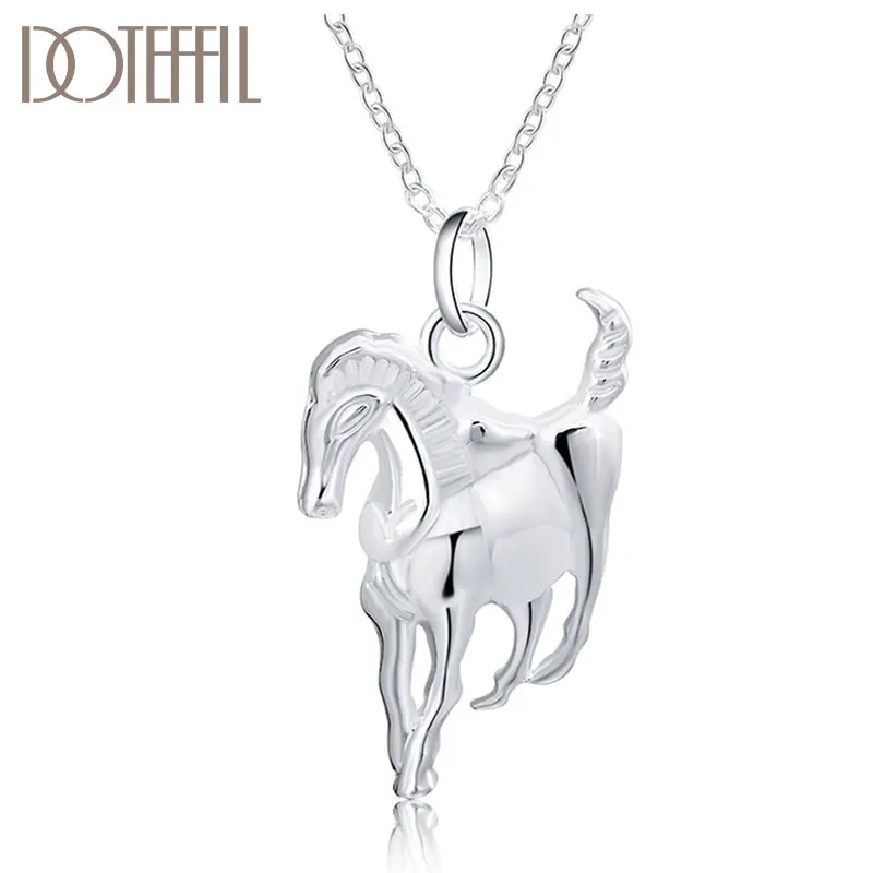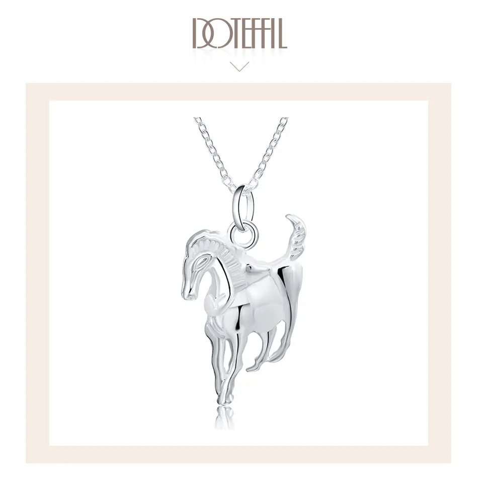 Ожерелье DOTEFFIL из стерлингового серебра 925 пробы с подвеской в виде лошади длиной 18 дюймов для женщин и мужчин, модные ювелирные украшения для свадебной вечеринки