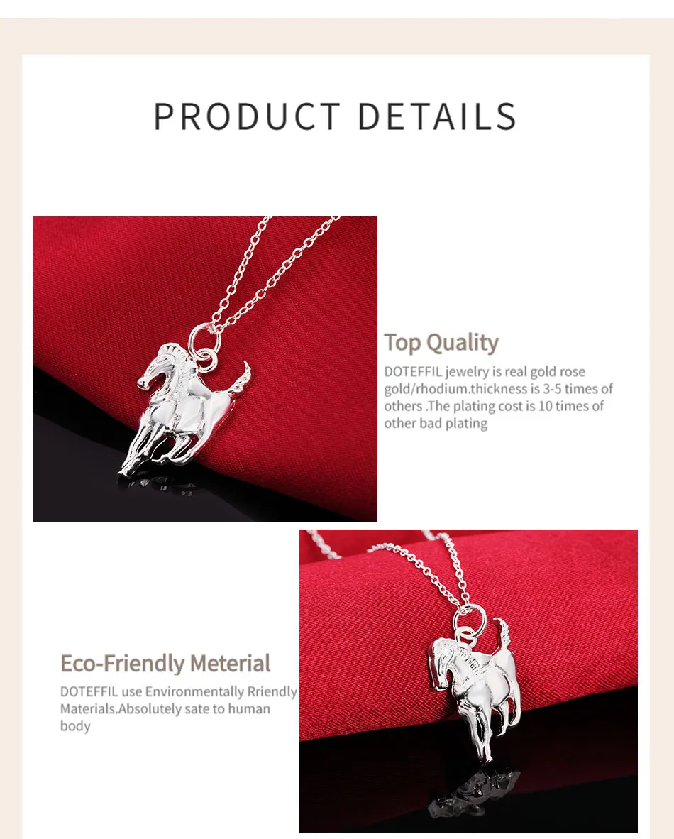 DOTEFFIL серебро 925 пробы 18 дюймов подвесная подвеска в виде лошади ожерелье для женщин и мужчин модное свадебное украшение для вечеринки