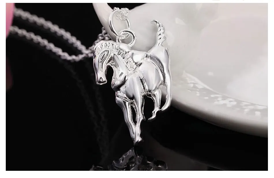 2021 новый 925 стерлингового серебра простой лошадь кулон ожерелье ...