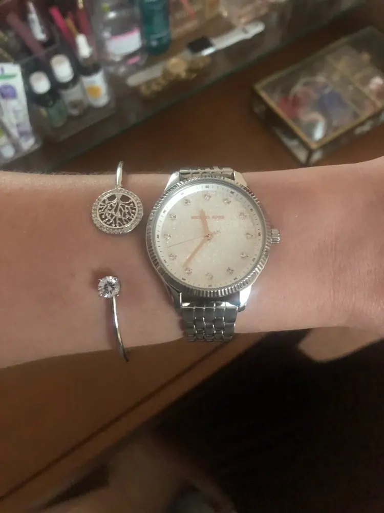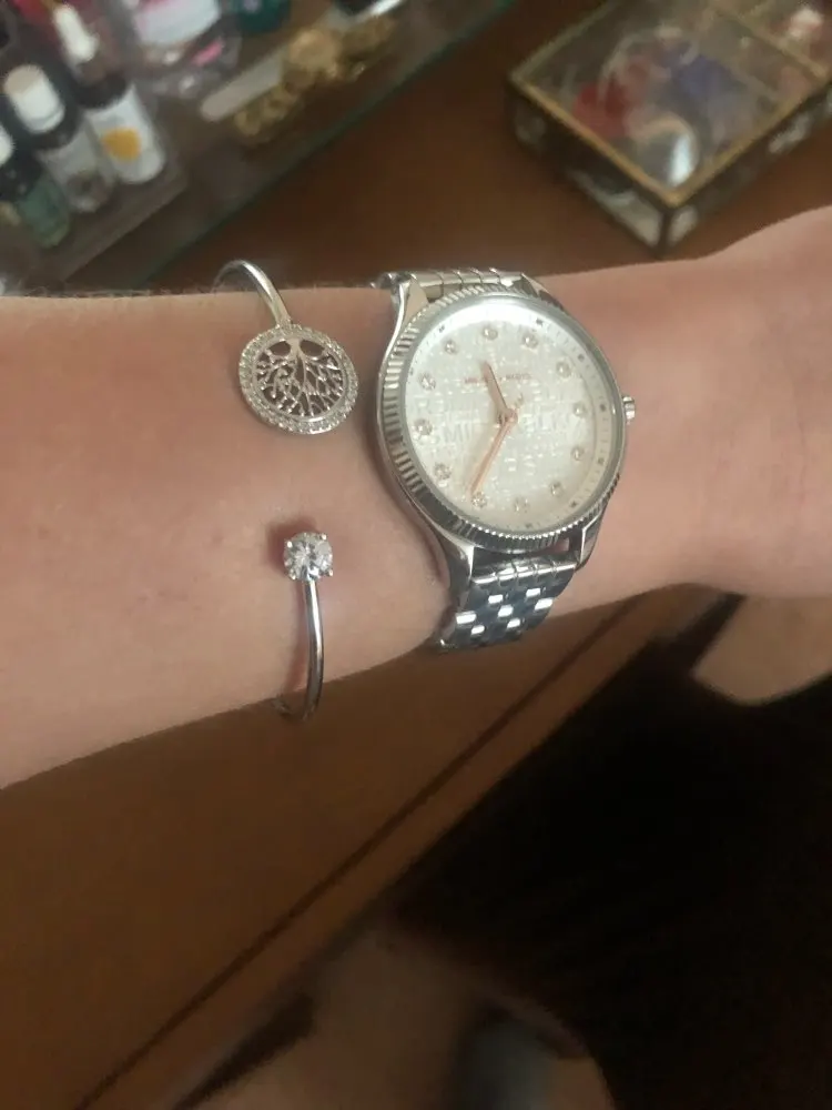 Роскошно, и красиво, элегантно. Смотрится на руке хорошо, переливается. На узкое запястье можно подкорректировать. Фото, соответствует.