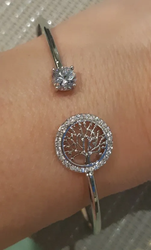 Женский браслет с белым цирконом, регулируемый браслет с изображением Древа Жизни, свадебный браслет серебристого цвета