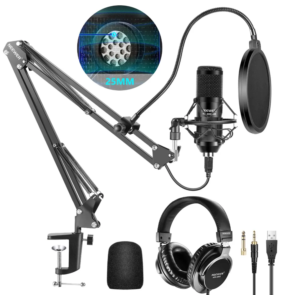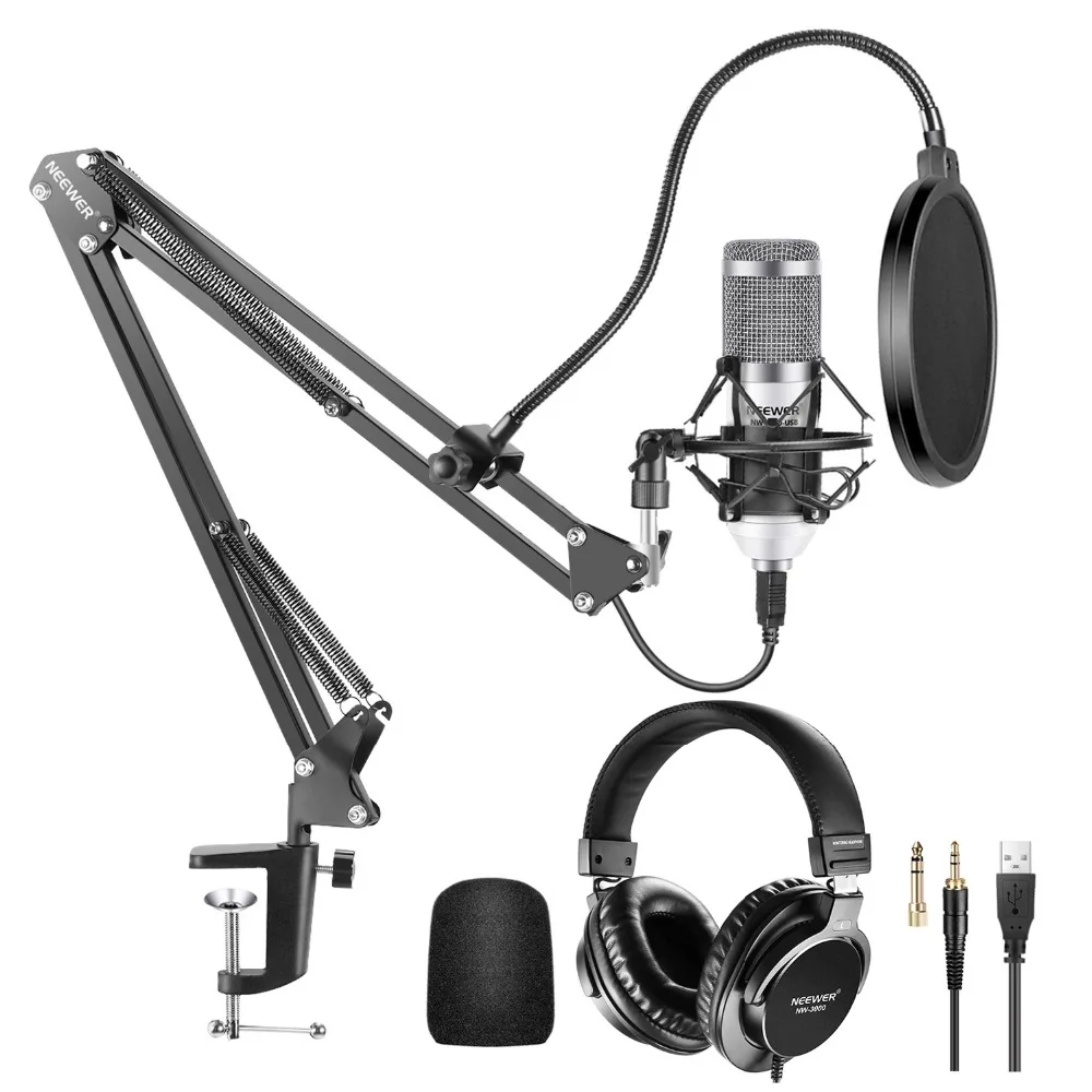 Комплект USB-микрофона Neewer 192 кГц24 бит, конденсаторный микрофон с гиперкардиоидным конденсатором и наушниками для монитора, с поролоновой крышкой, с подставкой