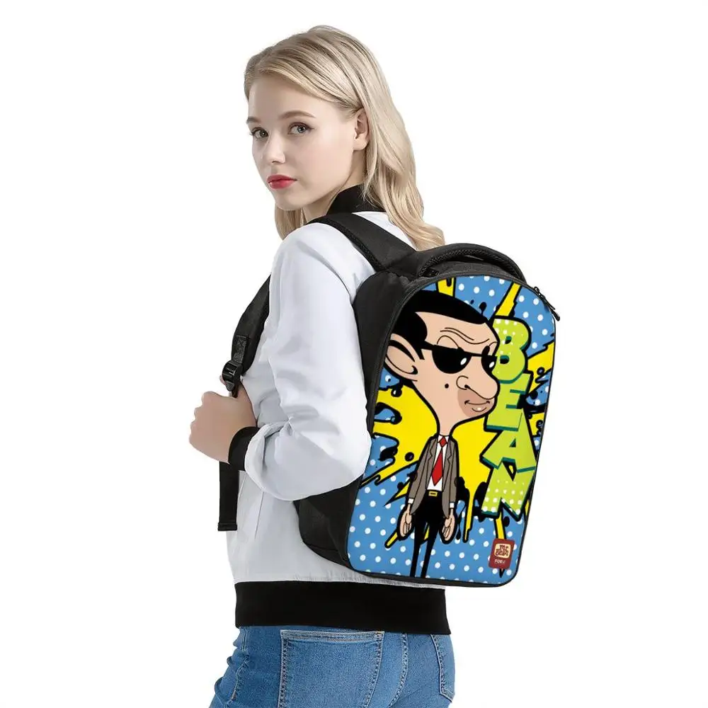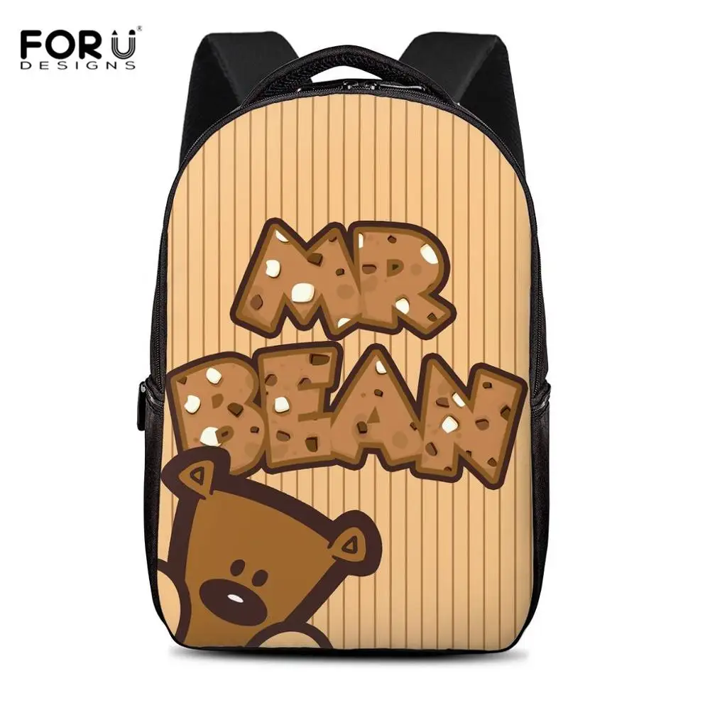 Милый школьный портфель FORUDESIGNS с узором Mr.Bean для девочек, мальчиков, студентов, легкие сумки, мягкий холщовый рюкзак на молнии для ноутбука