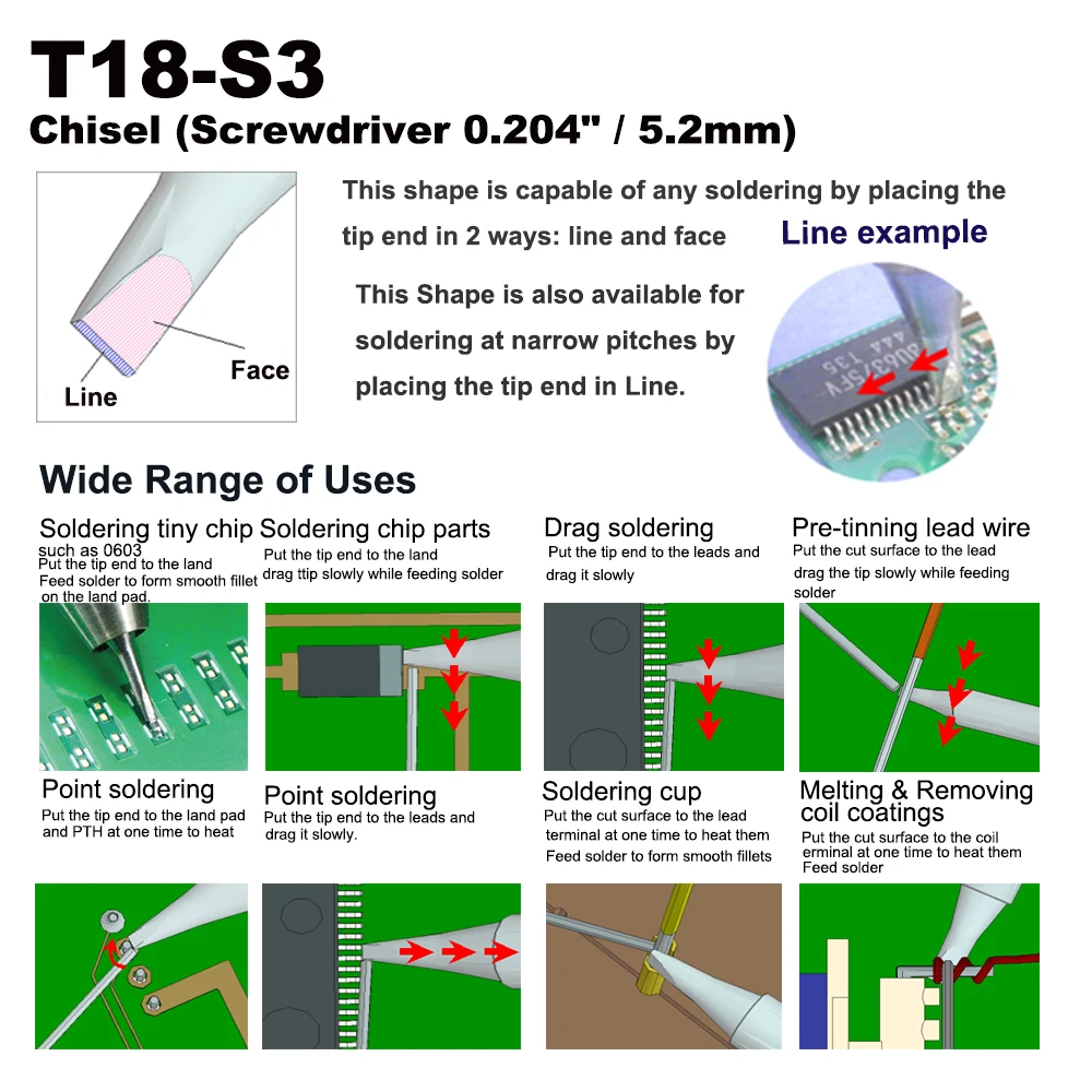 T18-S3 отвертка с наконечником для пайки 5,2 мм, 0,204 дюйма, подхо...