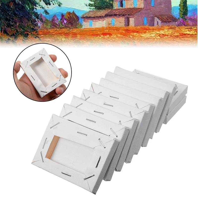10 шт. деревянная рама, белый растягиваемый Холст из хлопка 5*7 см, холст для рисования, пустой мини-холст для масляной краски, DIY-художники, школьные принадлежности
