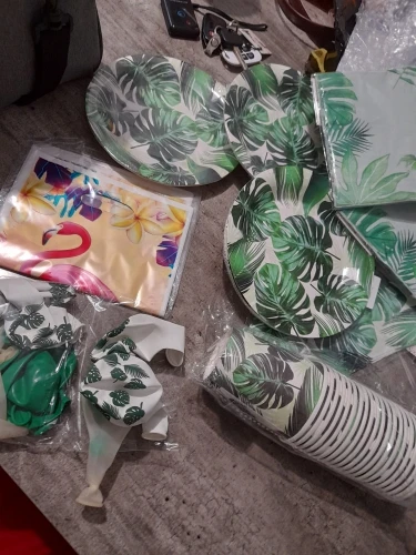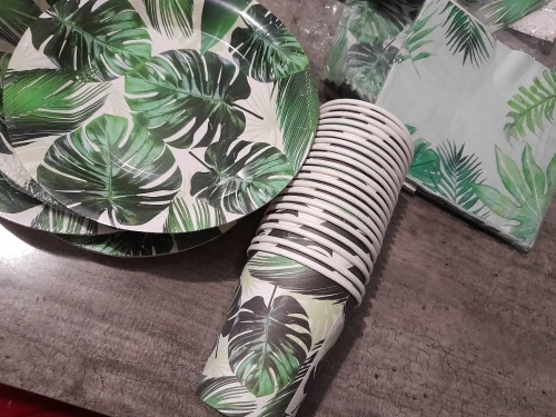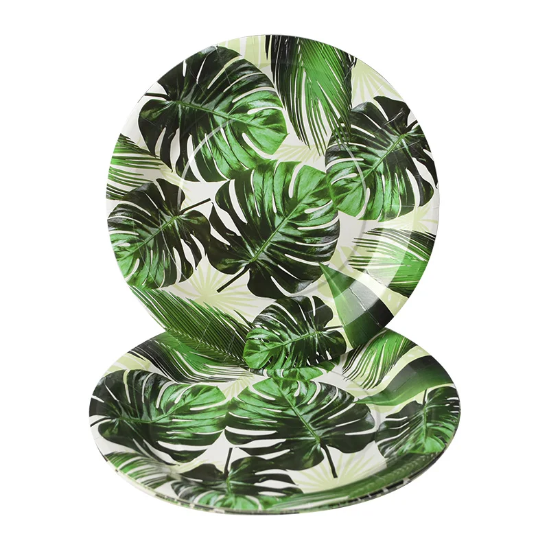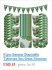 Набор летней одноразовой посуды, 61 предмет, зеленые салфетки бумажные тарелки и стаканы монстеры, тропические Гавайские острова, свадебные украшения