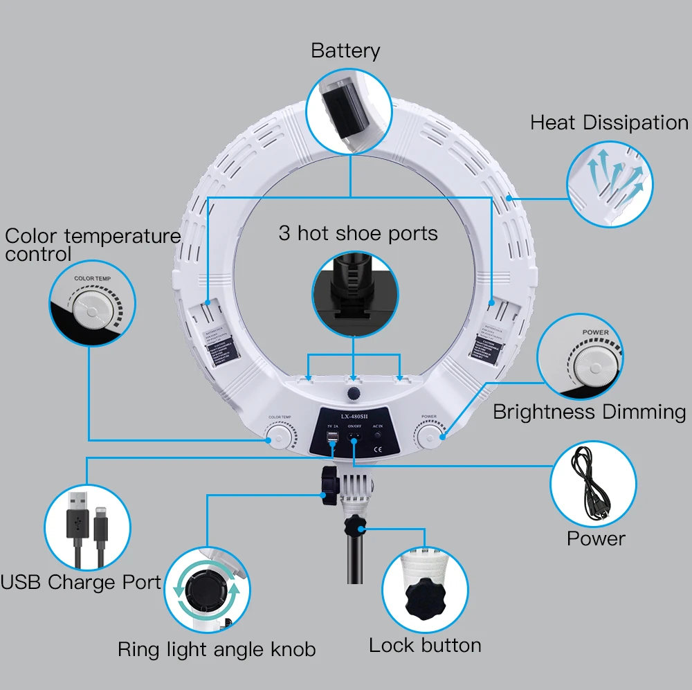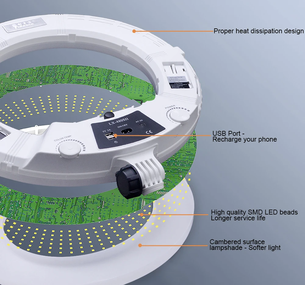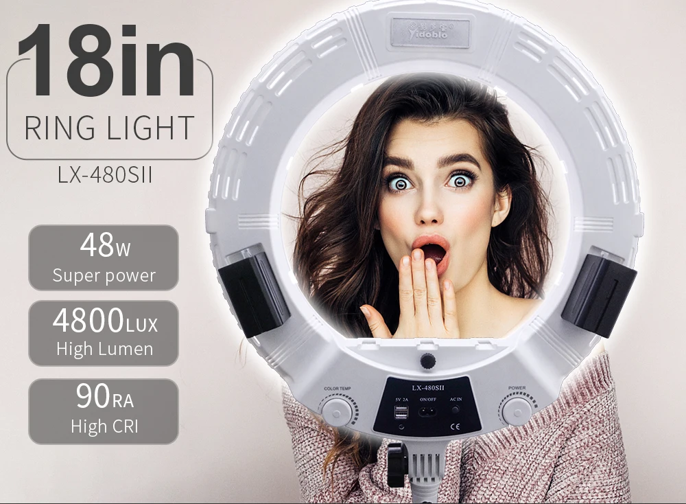 Кольцевой светильник Yidoblo LX-480SII, 48 Вт, с подставкой (2 м) и сумкой