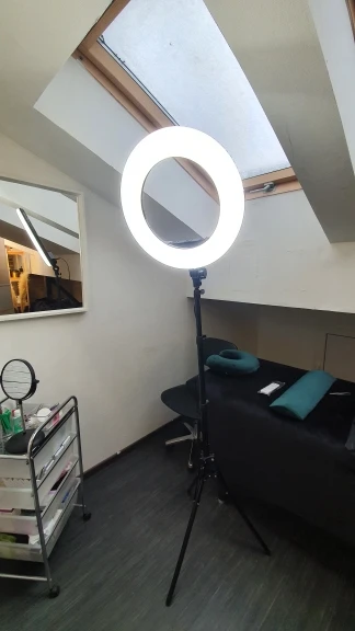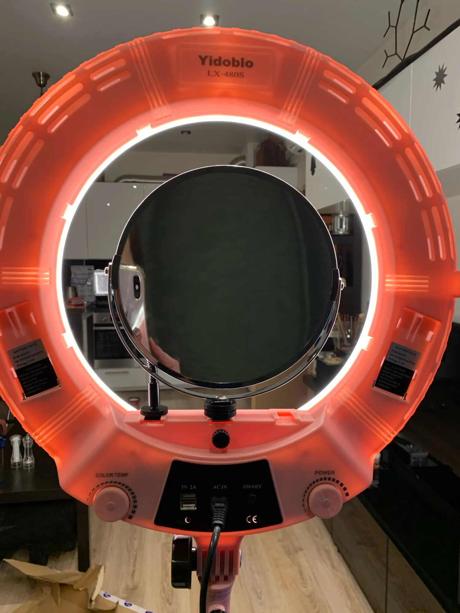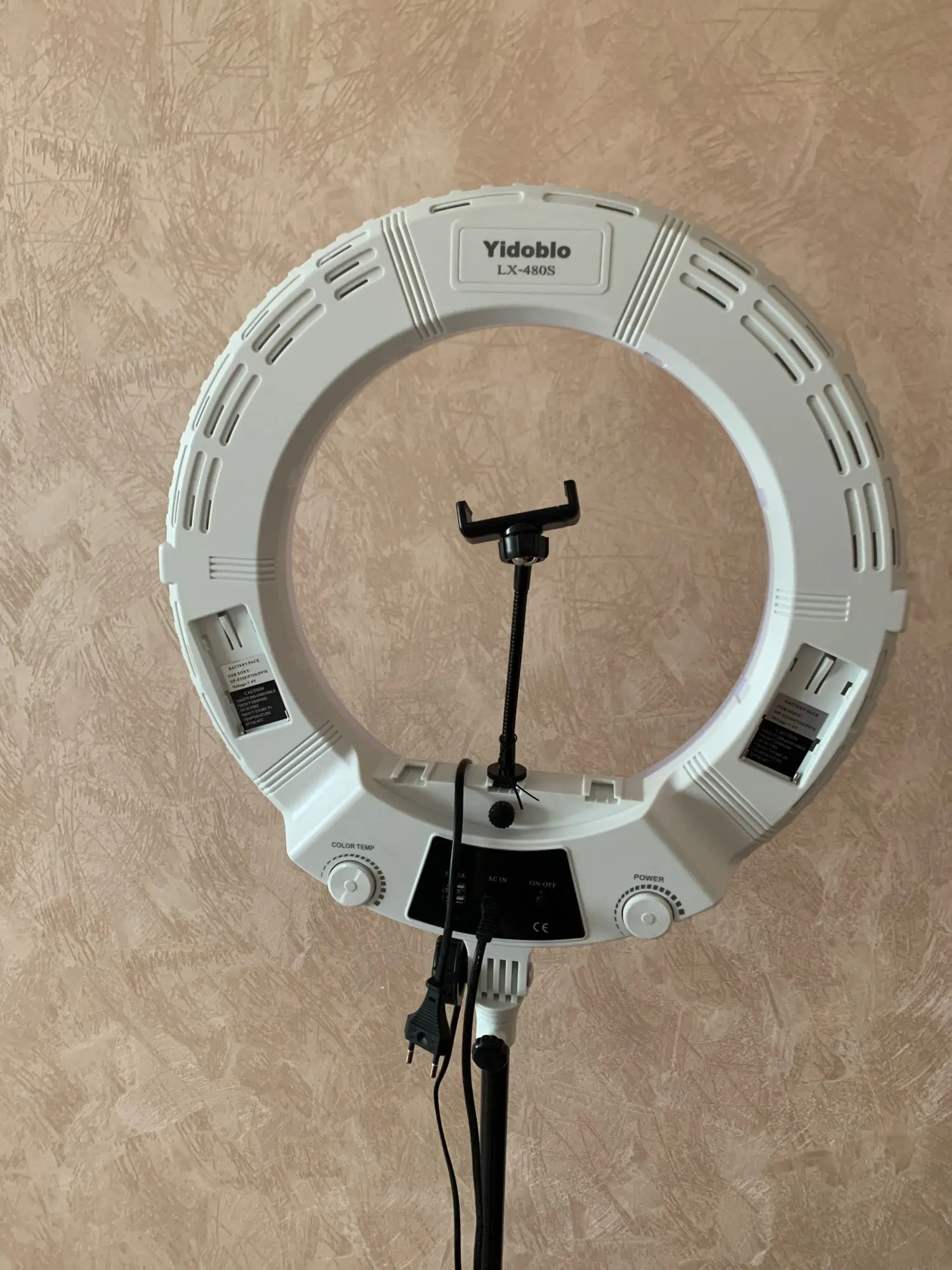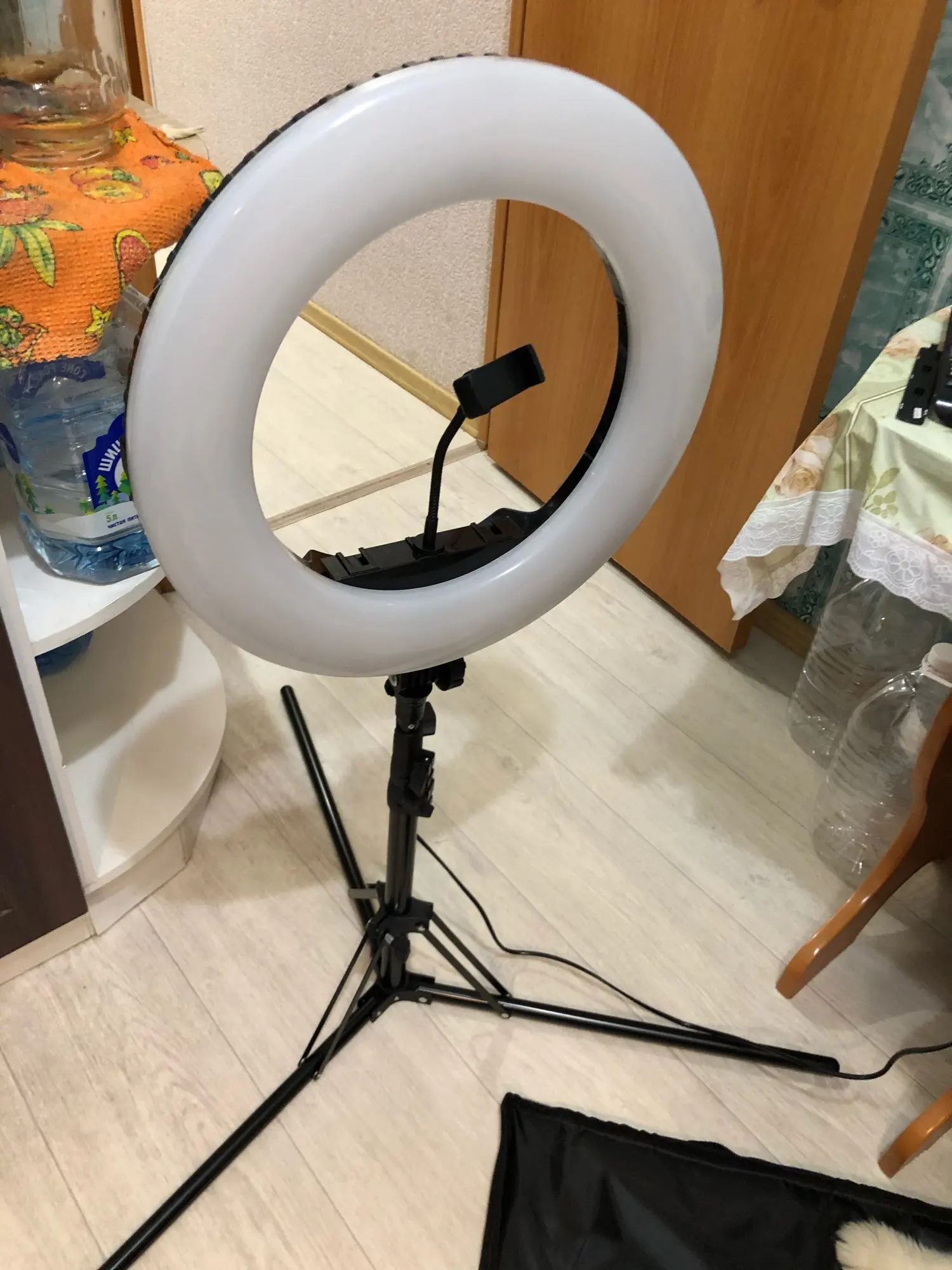 Очень долго не могла понять,какую лампу надо. Потом поснимала,поняла:мне важно,ну понятно,чтоб она светила как в последний раз-за это 5+++++.Кроме того важно было снимать рецепты,чтоб можно было согнуть лампу под углом 90’,а вот тут облом и чтоб телефон не падал,да ещё и зеркало нужно было,чтоб снимать как делаю мейк...вобщем лампа настолько тяжёлая,что во-первых,падает и угол составляет не 90’,а становится острым(то есть этот огроменный круг ближе к земле,чем нужно),а если туда ещё телефон закрепить,да ещё и зеркало,то её даже штатив не держит(((вот это совсем не айс. Хотя штатив металический вроде,но видимо ещё больше нужен,не знаю.Я как любой русский человек-кусочек бумажки подложила-получила угол 90’,но что мне делать с перевесом-ну балансирую,но из-за отсутствия фиксации под нужным углом,все время нужно изворачиваться. Конечно,когда она стоит вертикально-всё вообще супер!ну вот так,а на фото она нормально держит нужный мне угол для съёмок рецептов. Сдавать не буду,оставлю...