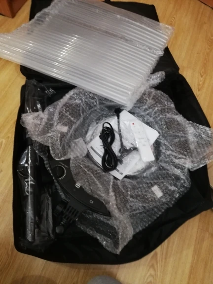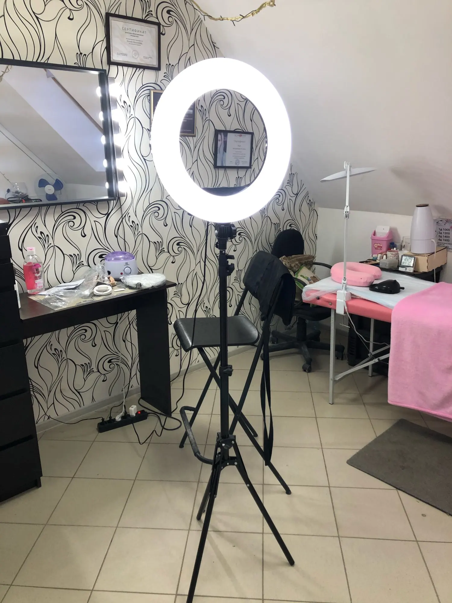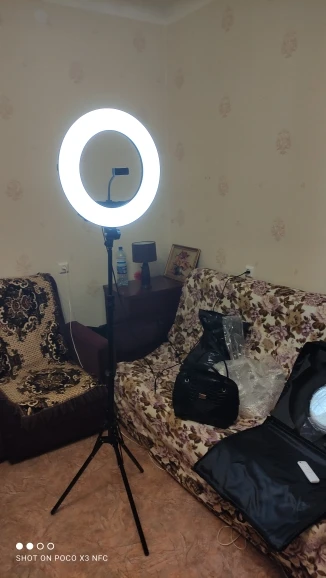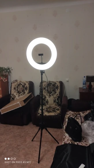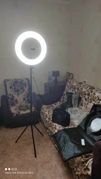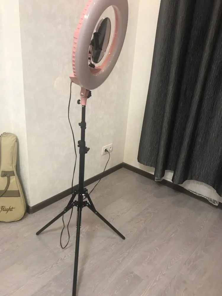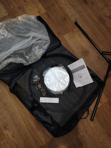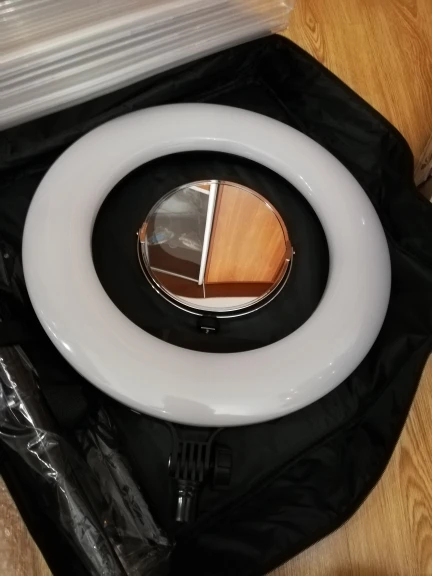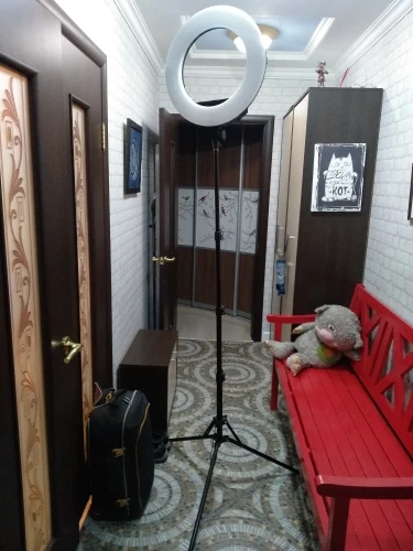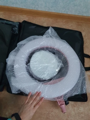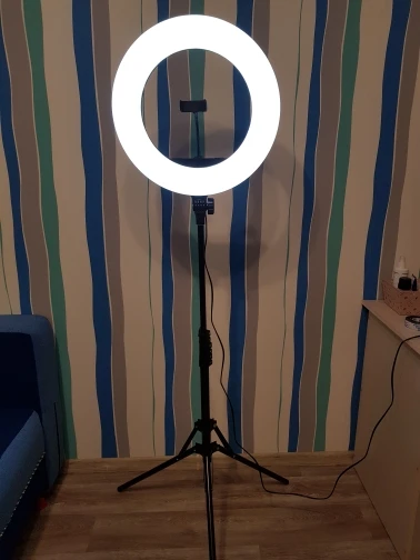 Изучала кольцевые лампы по обзорам, рекомендовали эту, взяла и не прогадала!!!! Доставка 3 дня, товар хорошо упакован, все исправно. Добротно сделаны все детали, вообще не нашла к чему придраться. Одна из самых лучших и приятных покупок на Алике!