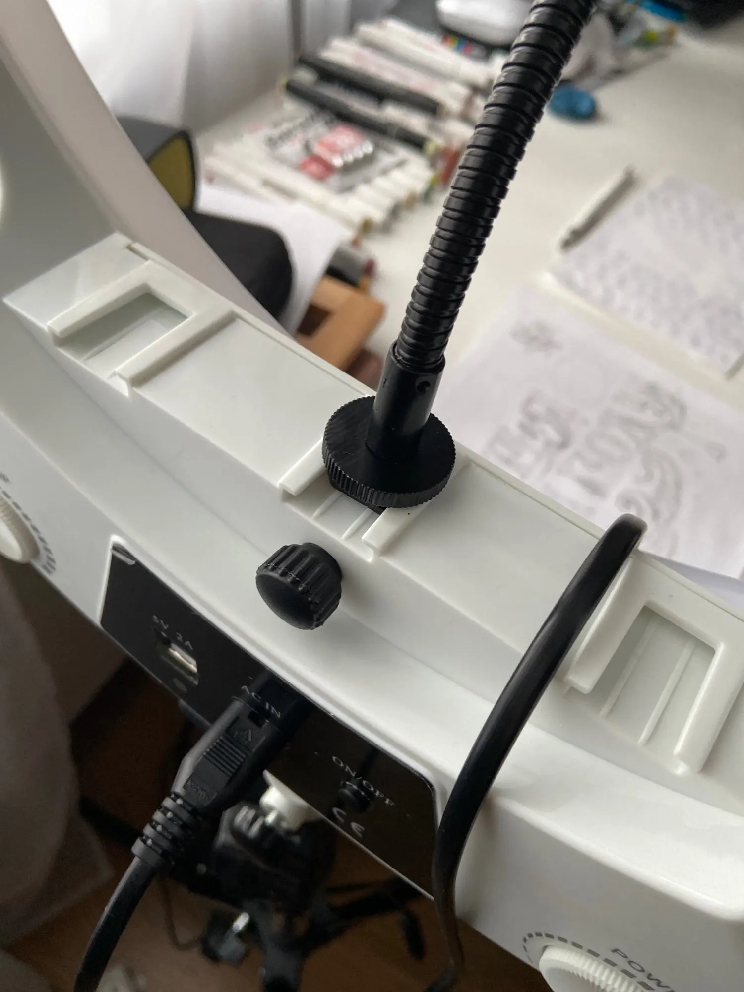 Неплохая пластиковая лампа, светит хорошо, пришла в полной комплектации на почту. Немного шатией штатив, но не критично - видео только тогда, когда лампу на поверхность вниз поворачиваешь(например, чтобы снять рецепт)
