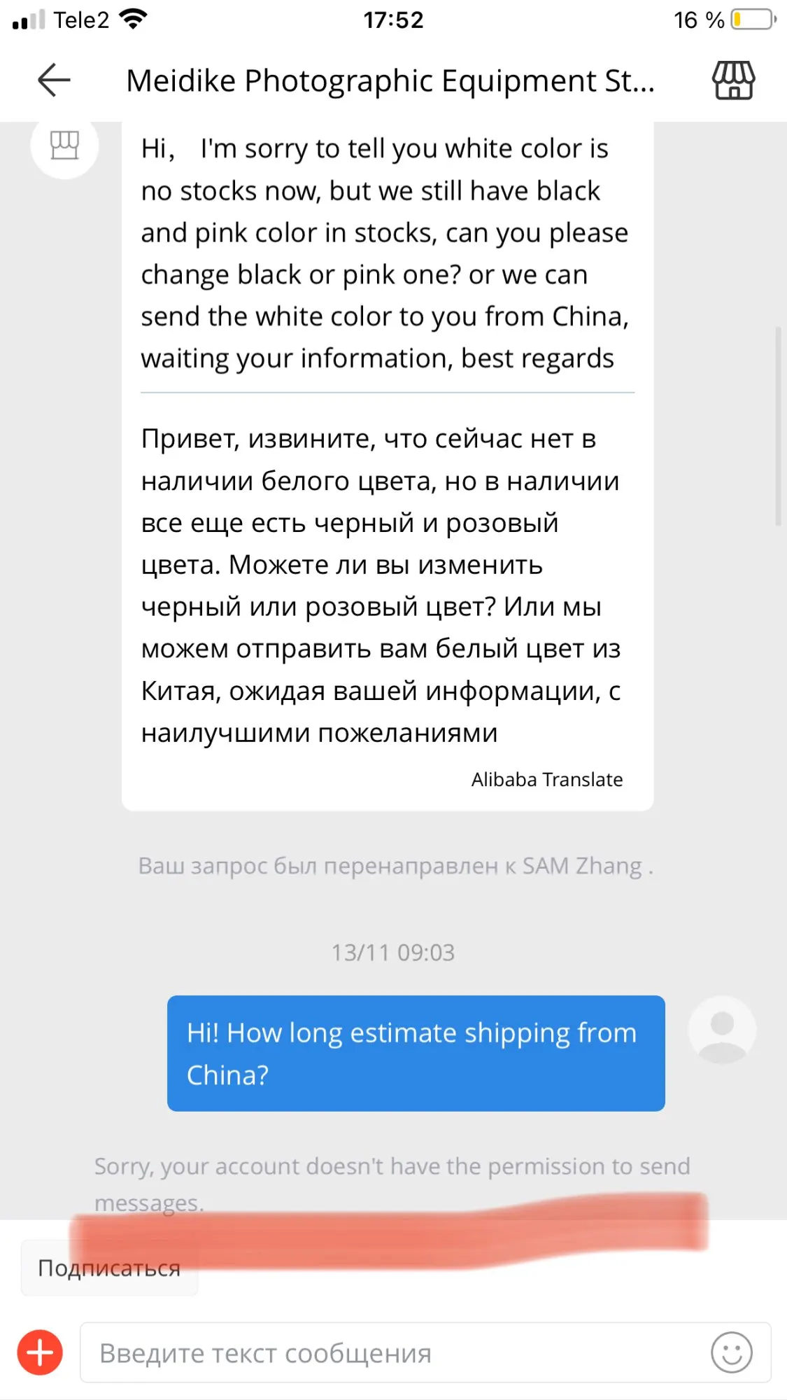Сначала оказалось, что кольцевой лампы белого цвета нет, потом продавец предлагал взамен другую лампу! Но!!! Пообщаться с продавцом не вышло, он заблокировал меня, сообщения отправлять ему не могла уже с самого начала покупки! Далее я вижу что моя посылка отправлена. Я было обрадовалась, приезжаю на почту, а там мне сообщают, что мою посылку уже получили в другом городе!!! Оказалось продавец дал не верный трек номер!!! После того как открыла спор деньги вернули