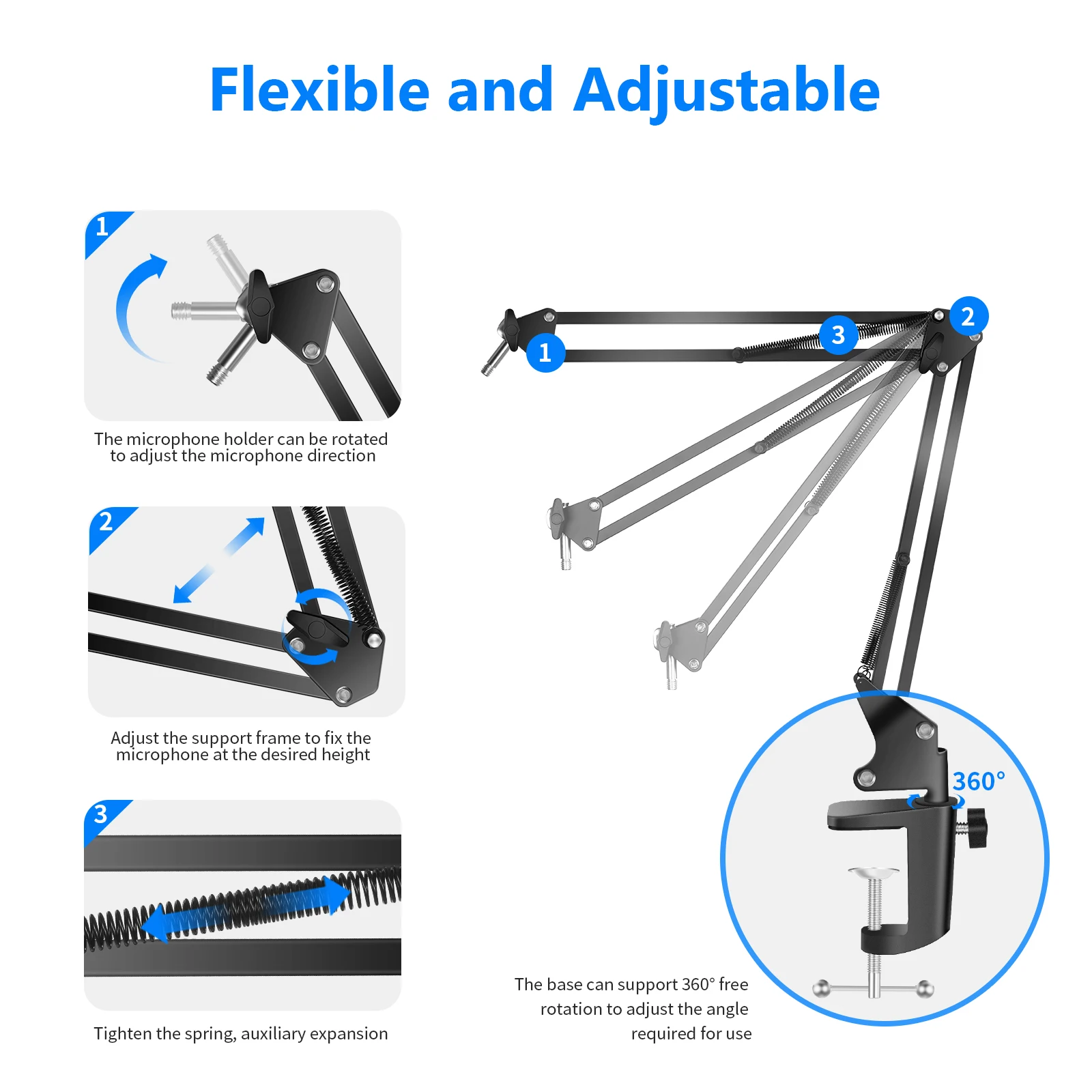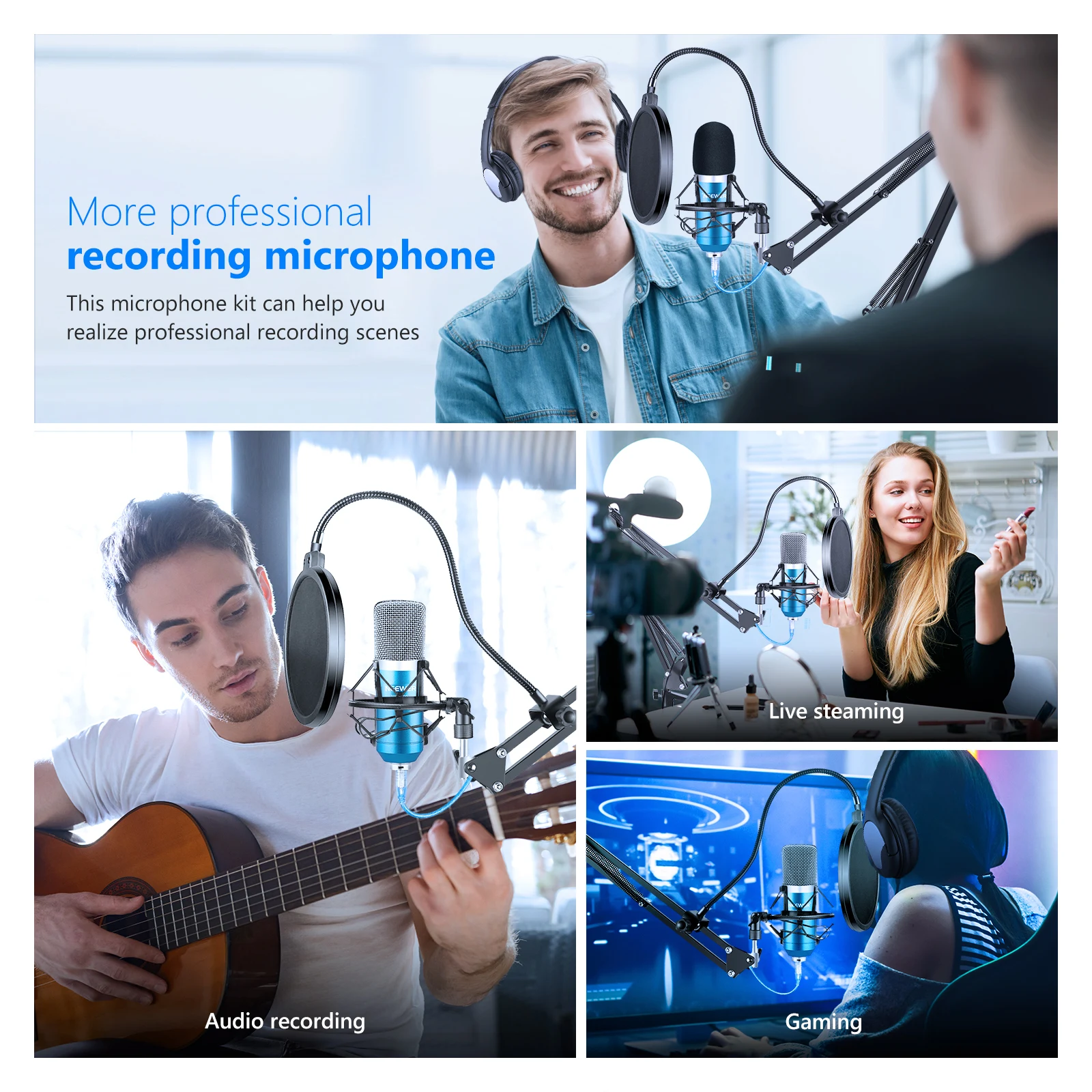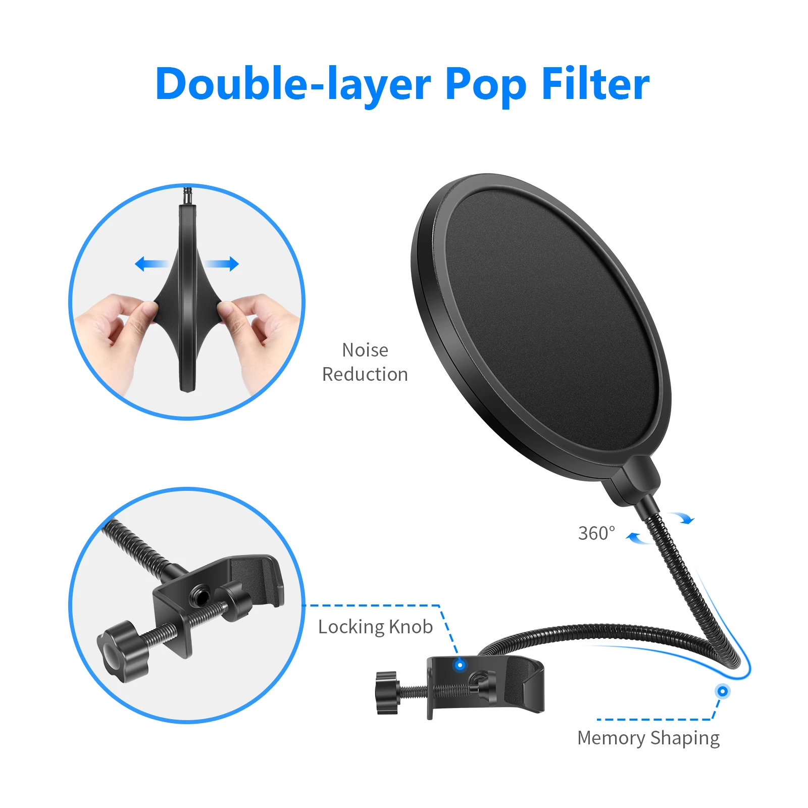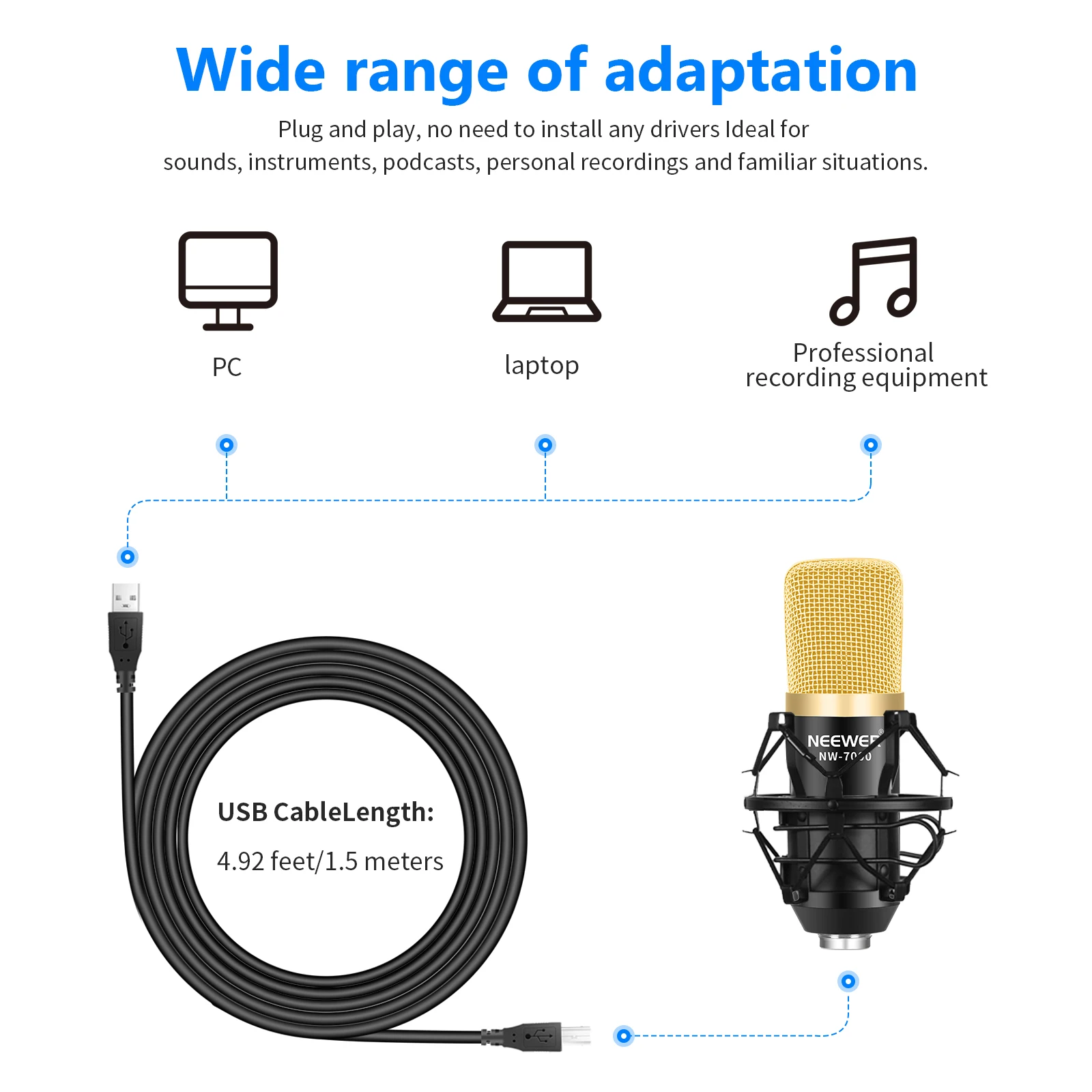 Neewer 7000 USB микрофон для Windows и Mac с подставкой, ударным креплением, поп-фильтром, набор для вещания и звукозаписи (черный/Синий серебристый)