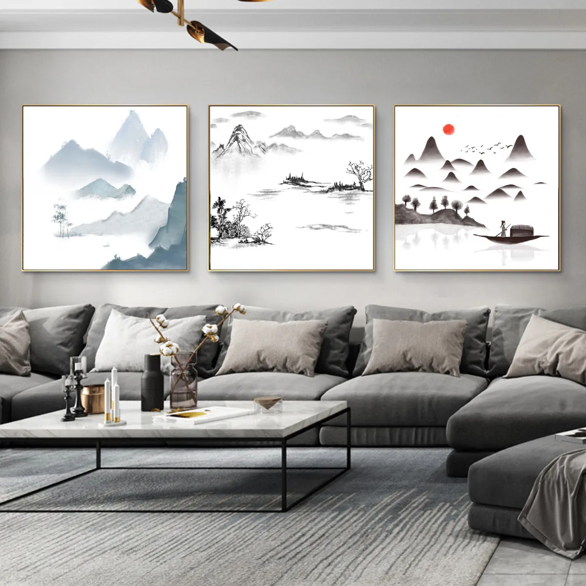 Пейзаж Закат в китайском стиле художественная концепция плакат холст печать живопись настенное Искусство гостиная украшение для дома