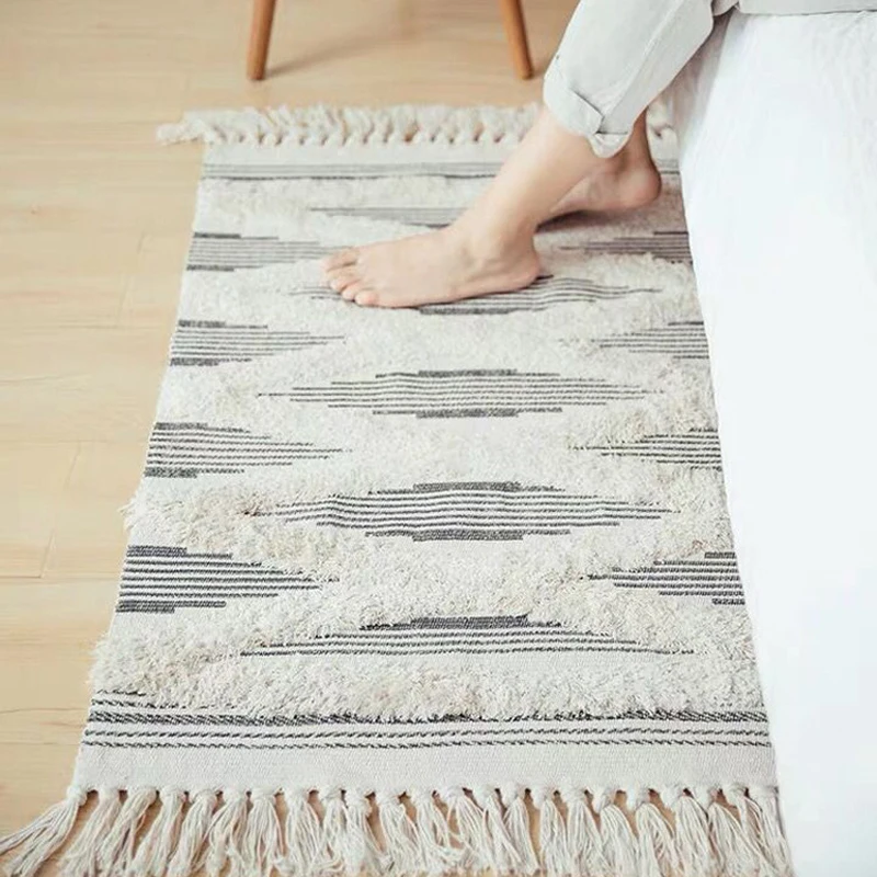 Хлопковый льняной ковер для гостиной, коврики с ручным плетением дл...
