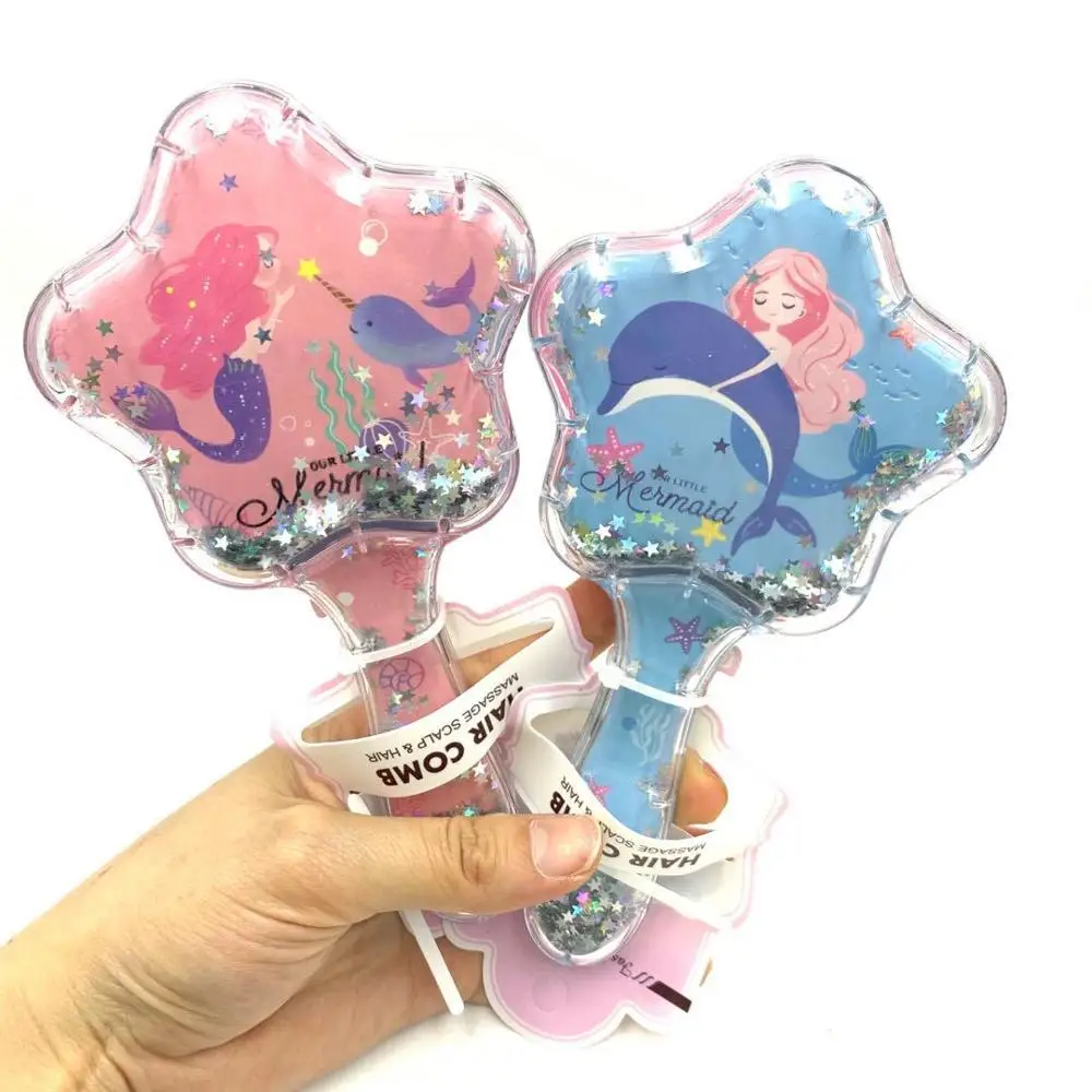 Расческа с рисунком единорога, русалки, кошки, звезды, блестками, массажная детская расческа, милая Расческа для девочек, длинные волосы, мм, Расческа с антискользящим узлом, расческа для волос