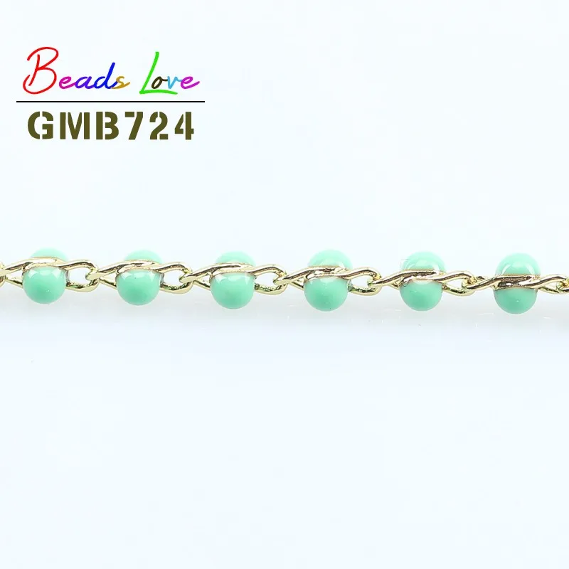 Наименование товара:1 метр Позолоченные капельные масляные милые проволочные плетеные цепи круглые каменные бусы цепи для DIY ювелирных изделий браслет ожерелье