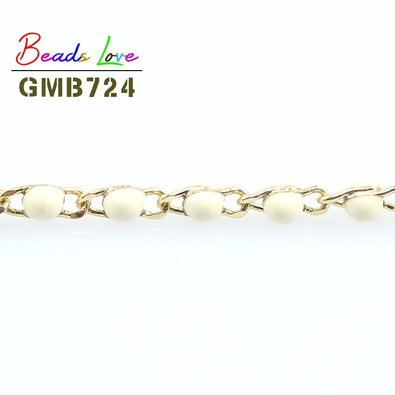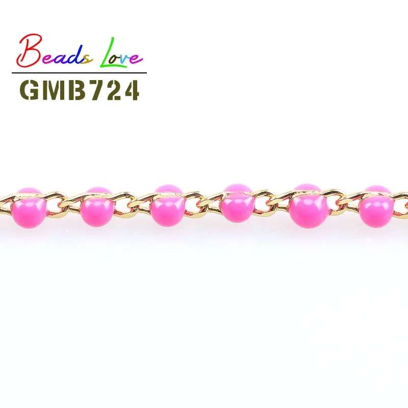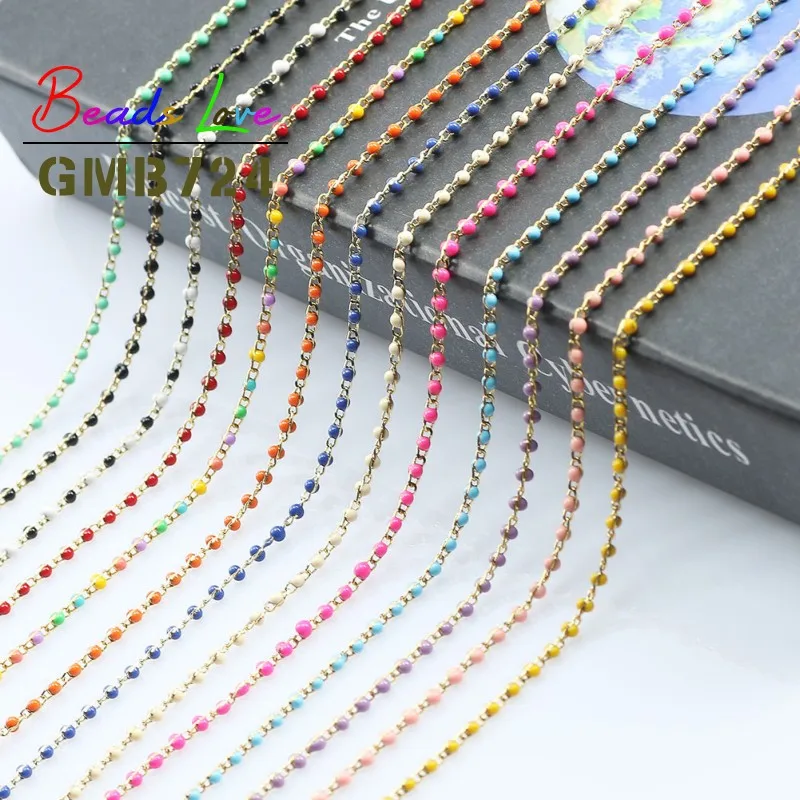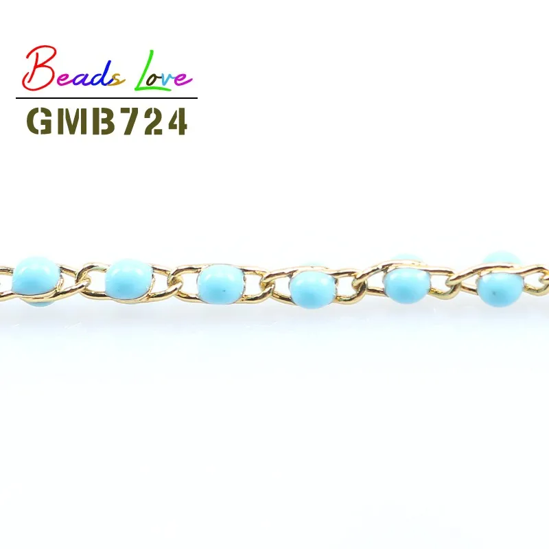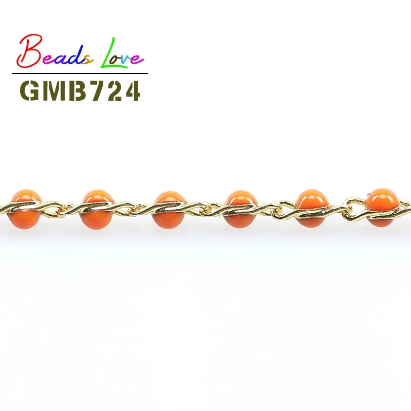 1 метр Позолоченные капельные масляные милые проволочные плетеные цепи круглые каменные бусы цепи для DIY ювелирных изделий браслет ожерелье