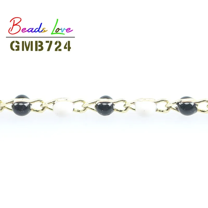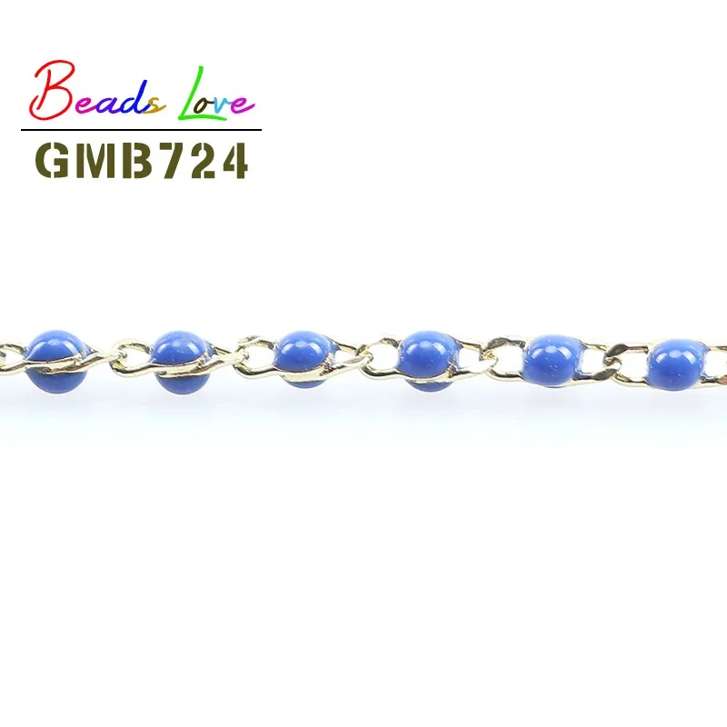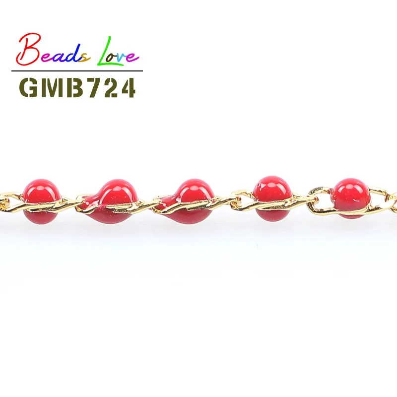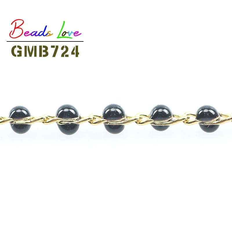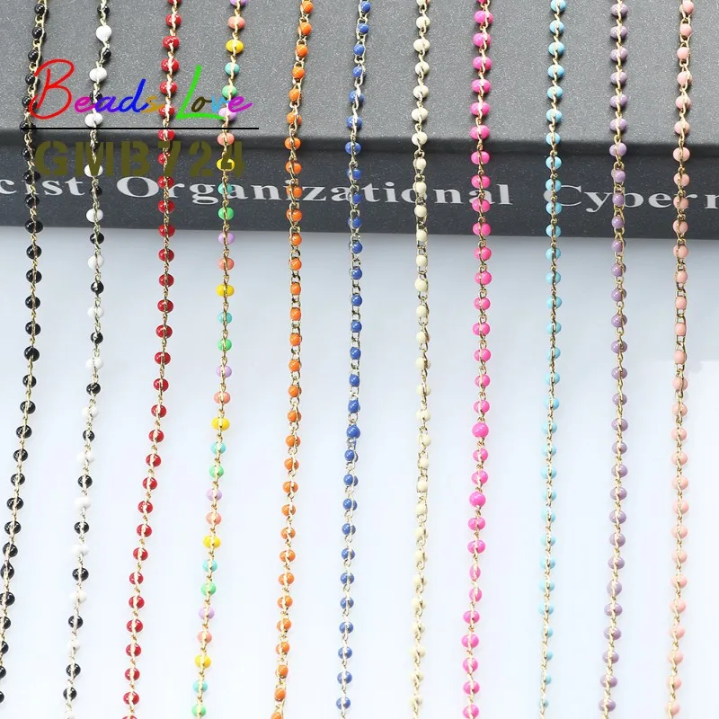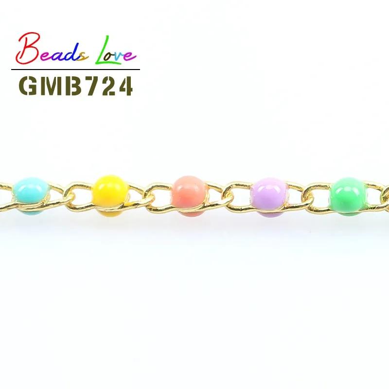 1 метр Позолоченные капельные масляные милые проволочные плетеные цепи круглые каменные бусы цепи для DIY ювелирных изделий браслет ожерелье