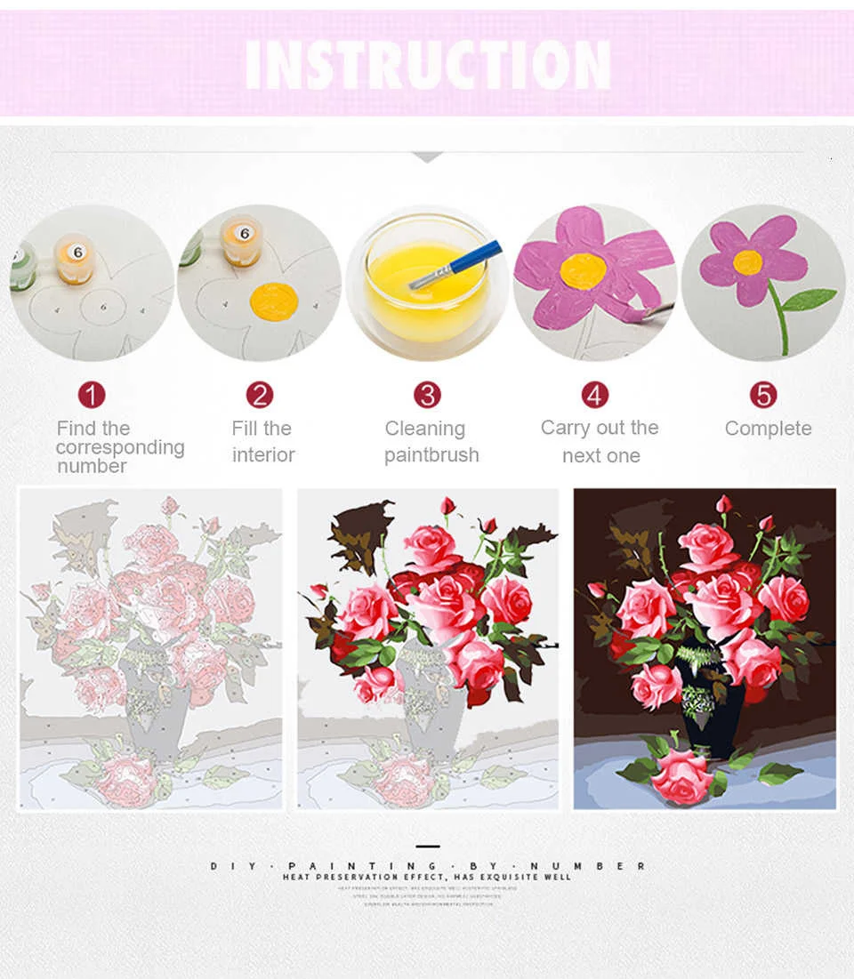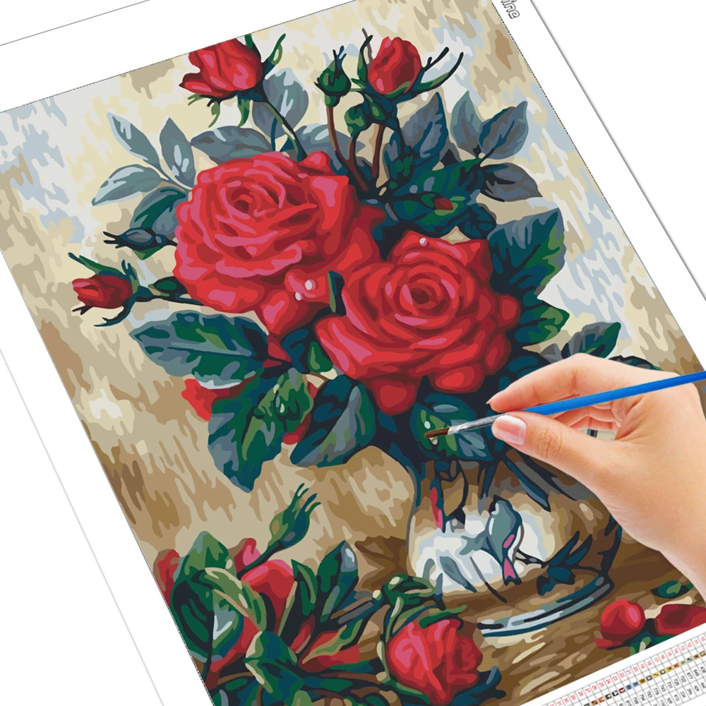 EverShine Рисование по номерам, цветы, искусство ручной работы, масляная краска по номерам, розы, цветы, рисование на холсте, хобби, домашний декор