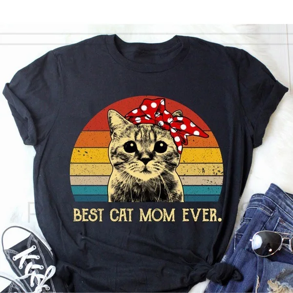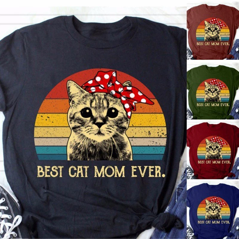 Футболка EDLPE женская с принтом кота, Винтажная футболка с милым графическим принтом, одежда в Корейском стиле, подарок на день матери
