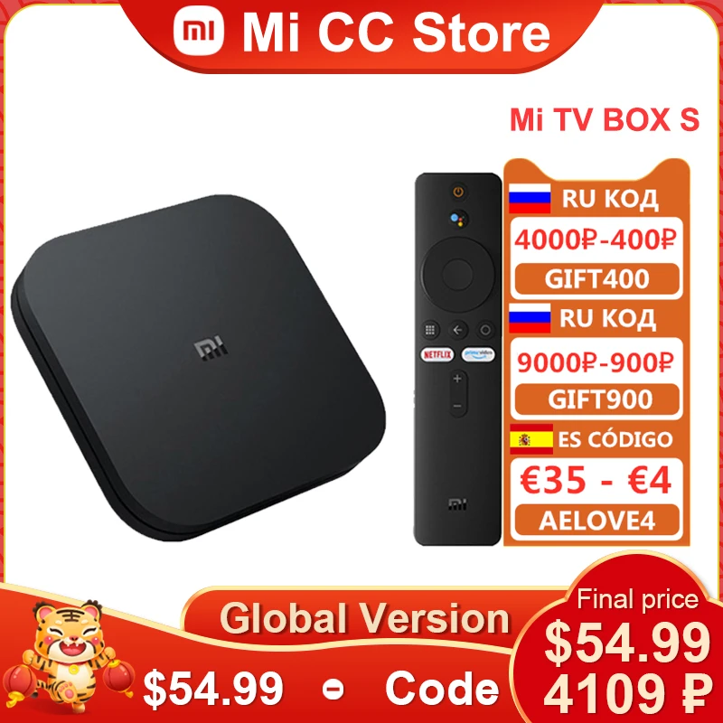 Умная ТВ-приставка Xiaomi Mi TV Box S, Android TV 9,0, 4K, Ultra HD, 2 ГБ, 8 ГБ, Wi-Fi, NETFLIX, комплект Smart MiBox 4, медиаплеер