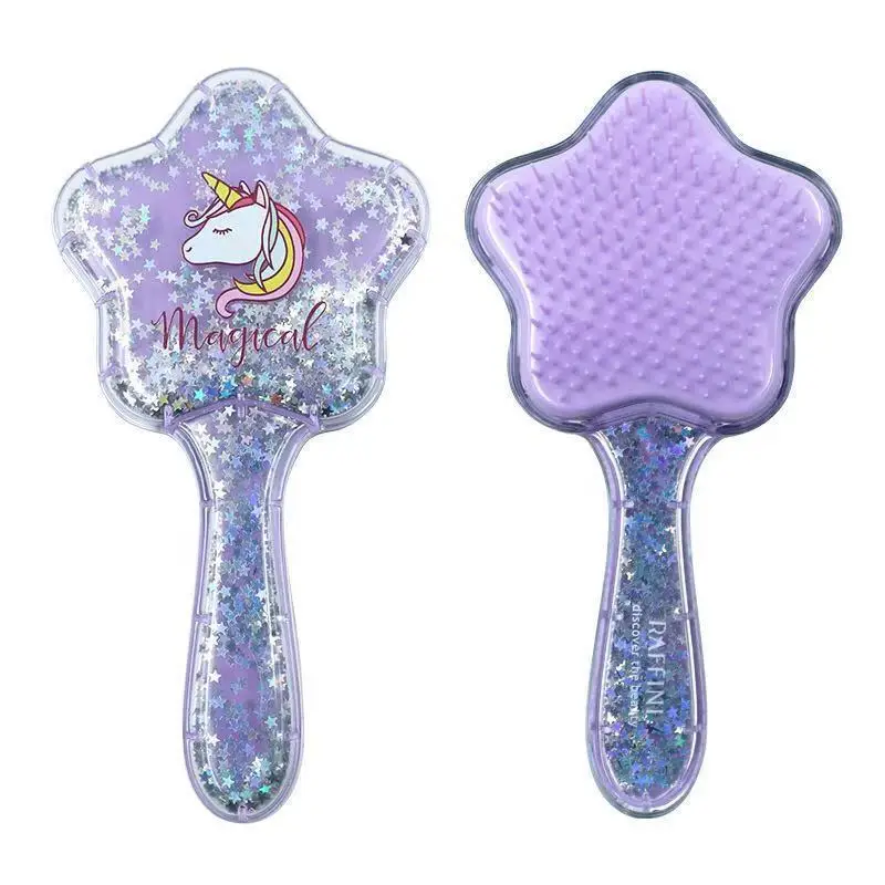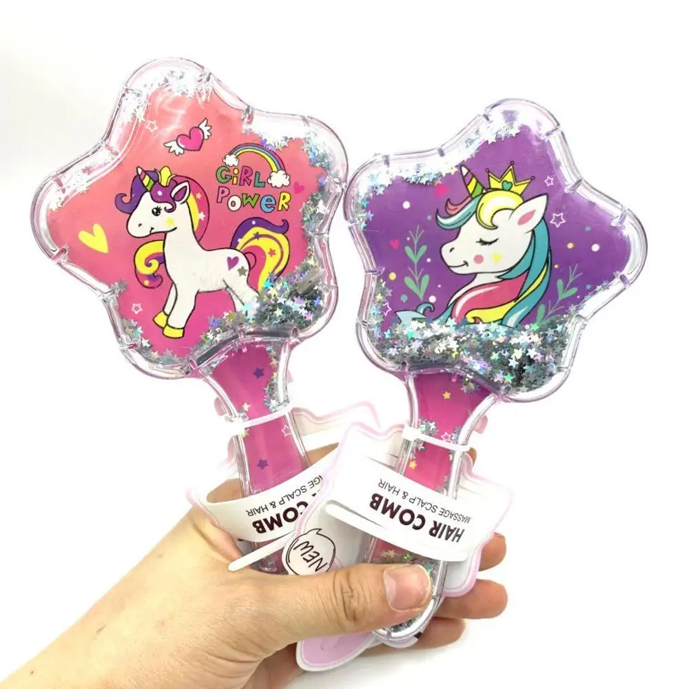 Детская Расческа с узором в виде единорога, Русалочки, кота, звезд, блесток, массажная Расческа для девочек, расческа для длинных волос, расческа для волос с защитой от узлов