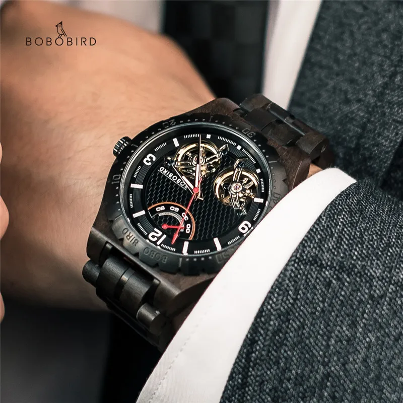 BOBO BIRD автоматические механические мужские часы деревянные часы хронограф Relogio Masculino роскошные часы в деревянной коробке erkek kol saati