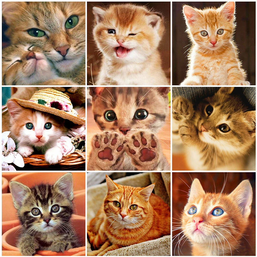 Алмазная мозаика полная компоновка: полностью квадратная Алмазная картина кошка