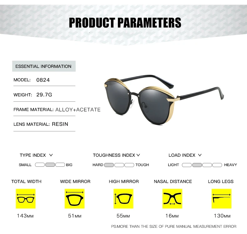 Детали производства Материал оправы: металл Объектив: смола Стиль: кошачий глаз Костюм: Женский Размер: 1. Высота линз: 55 мм 2. Переносица: 16 мм 3. Ширина линз: 51 мм 4. Длина дужек: 130 мм 5. Ширина оправы: 143 мм