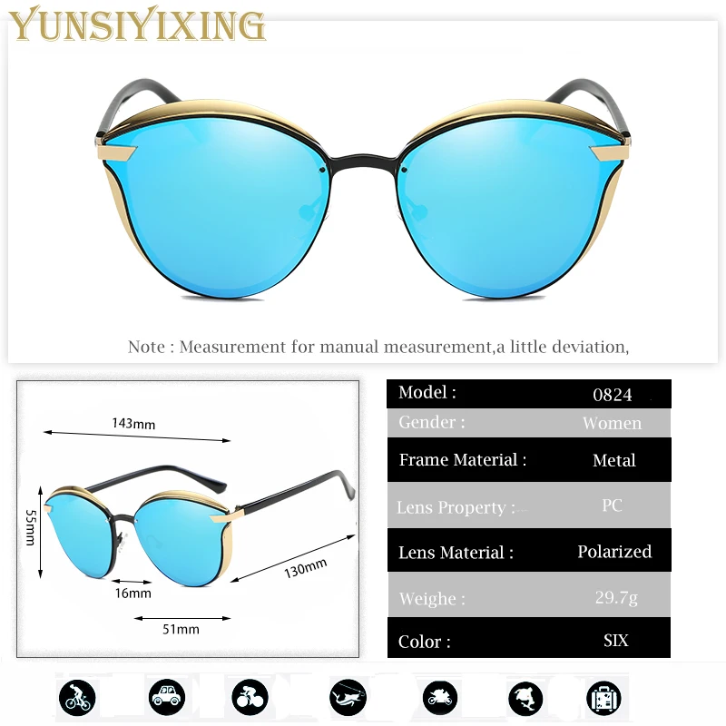 YSYX новые женские поляризованные солнцезащитные очки модные кошачий глаз дорожные солнцезащитные очки UV400 зеркальные антибликовые женские очки из сплава 0824