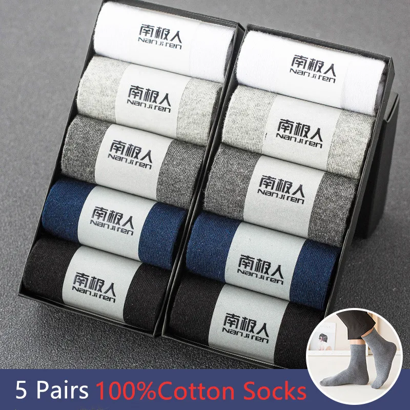 5 пар, носки для мальчиков носки для девочек длинные хлопковые носки на каждый день Лето; Дышащие однотонные Цвет мужские черный, белый цвет носки; Горячая распродажа; Мужские носки делового стиля