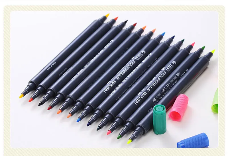 Название продукта: водорастворимый двусторонний маркер Характеристики Товара: 12/24/36/48/80 цветов Размер изделия: 23*27*12 см Вес продукта: 1,4 кг Бренд: STA