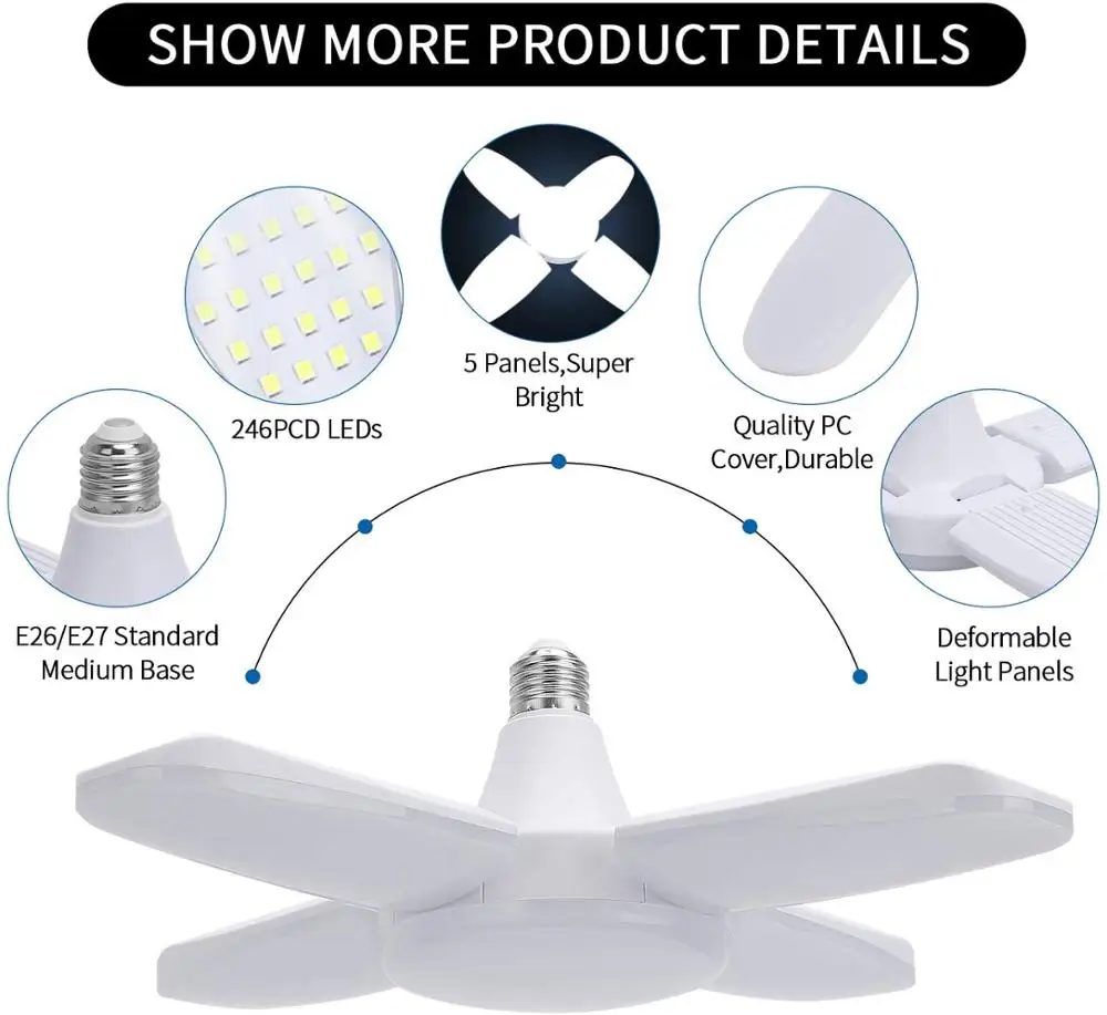 4. [Простая установка]-нет инструментов, Нет проводки, нет профессиональных электриков, просто закрутите в гнездо среднего размера. Отсутствие вредных веществ, таких как ртуть и свинец, отсутствие излучения, 100% защита окружающей среды, 100% безопасность и простота установки.