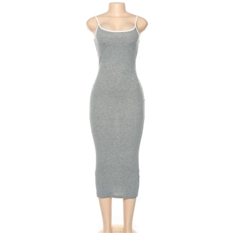 Платье женское облегающее без рукавов, модный Однотонный сарафан на бретелях-спагетти, повседневное вечернее Макси, на лето