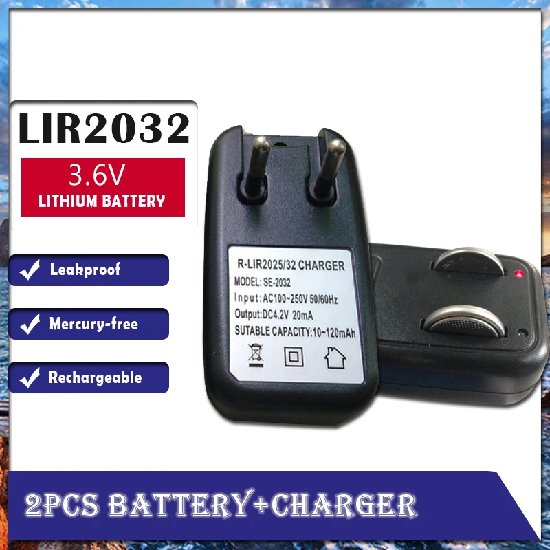 Литий-ионные аккумуляторы LIR2032, 3,6 В, зарядное устройство, 2 шт.