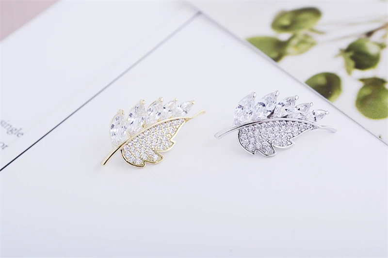 Новое поступление, мини кристалл, кубический цирконий, Броши со стилизованными листьями, для женщин, лацкан, шпильки сумочки, бижутерия, аксессуары, роскошная бижутерия, брошь для женщин