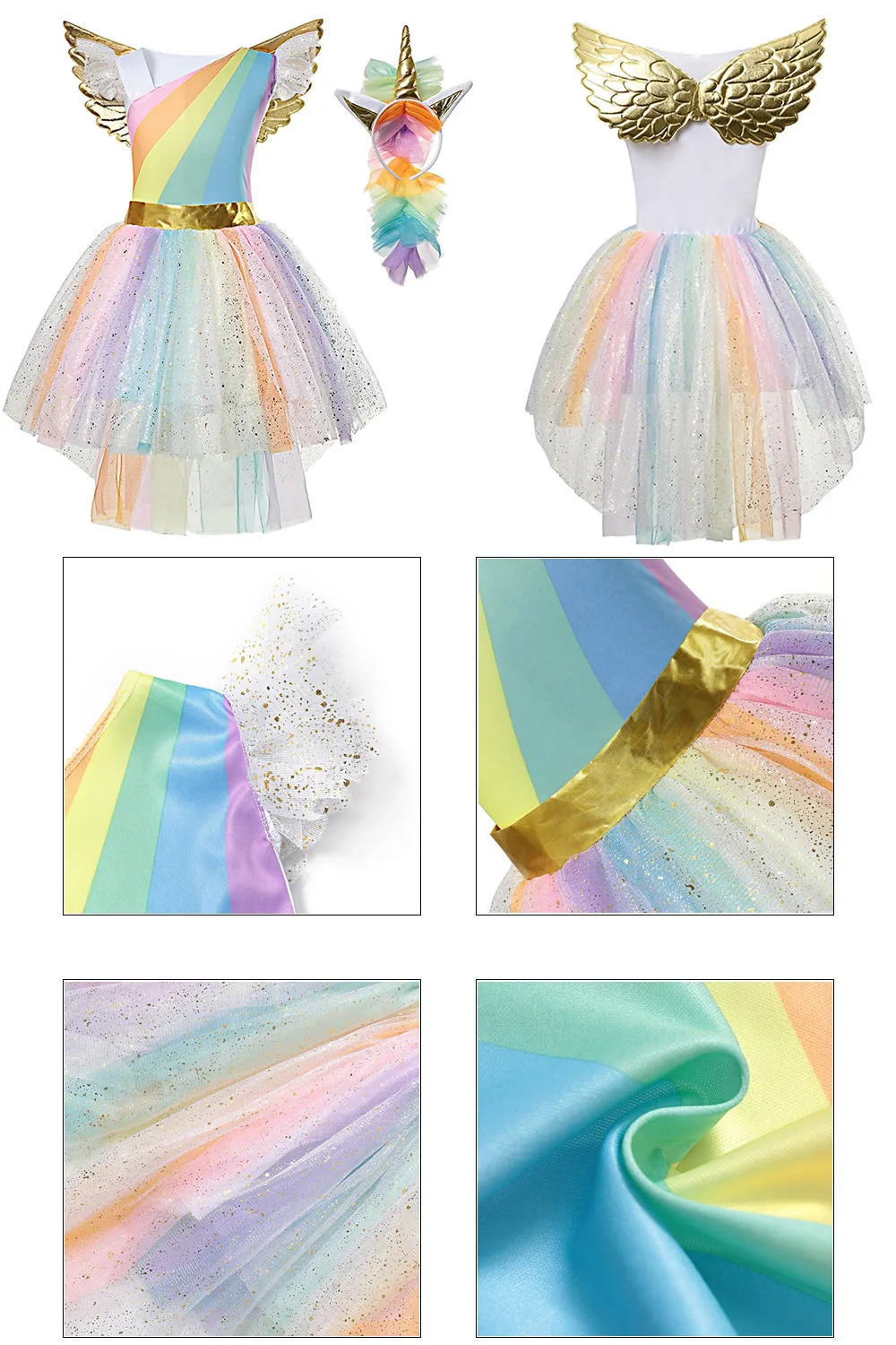 Платье принцессы для девочек, детские игровые костюмы Эльзы и Анны, модная одежда в виде белоснежного и радужного единорога, Мультяшные сказочные наряды