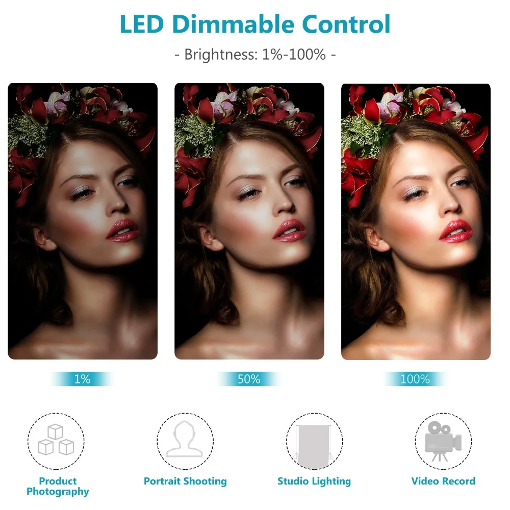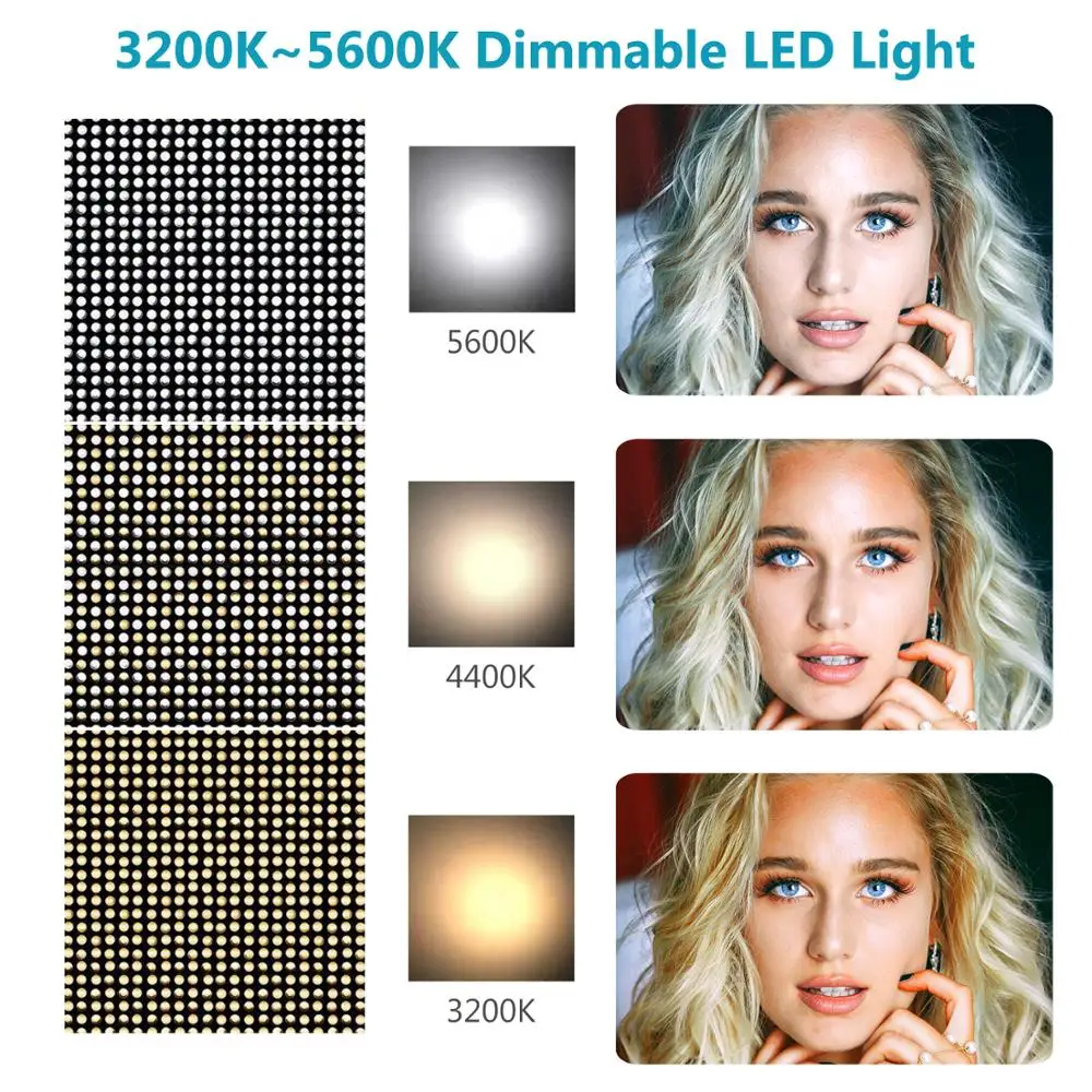 Яркость с регулируемой яркостью и 2 Цветовая температура:С 660 бело-660 желтый светодиодный долговечный лампы, этот Светильник Освещает переменной баланс белого от Вольфрам-дневной светильник от 3200 до 5600K; 2 отдельных ручки на задней панели для регулировки цветовой температуры и яркости; CRI 96 + может действительно восстановить цвет продукта или портрета; Четкий ЖК-экран может показать яркость, цветовую температуру и состояние питания Светильник